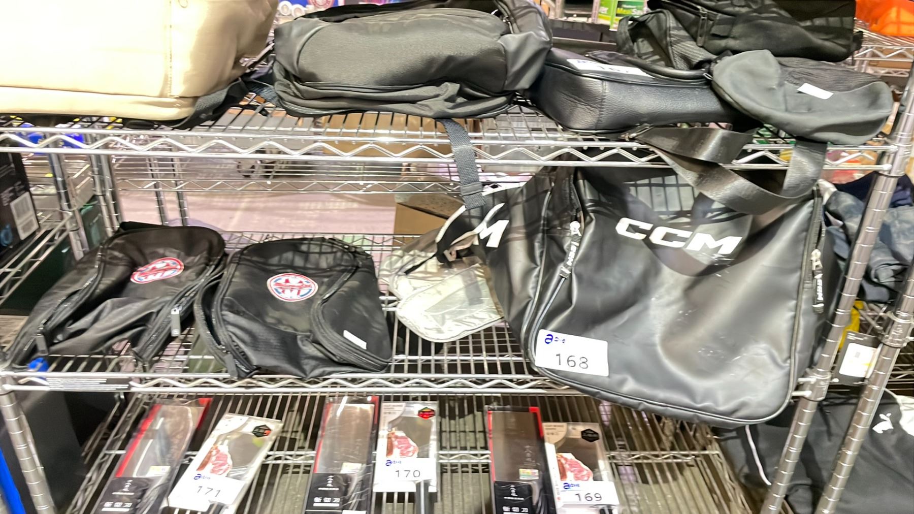 SHELF OF ASSORTED BAGS