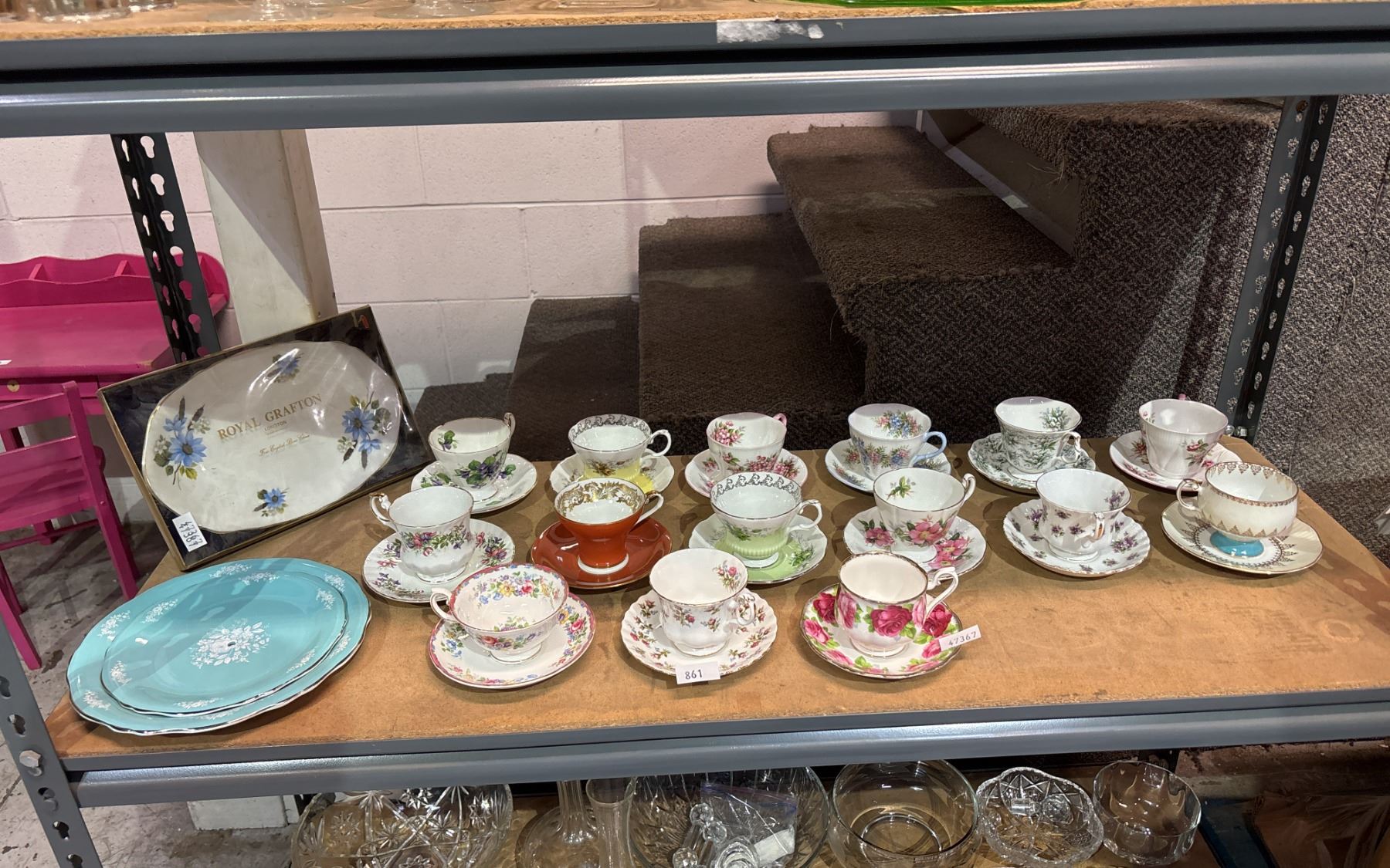SHELF OF ASSORTED BONE CHINA INCLUDING; AYNSLEY, ROYAL ALBERT, ROYAL GRAFTON & MORE