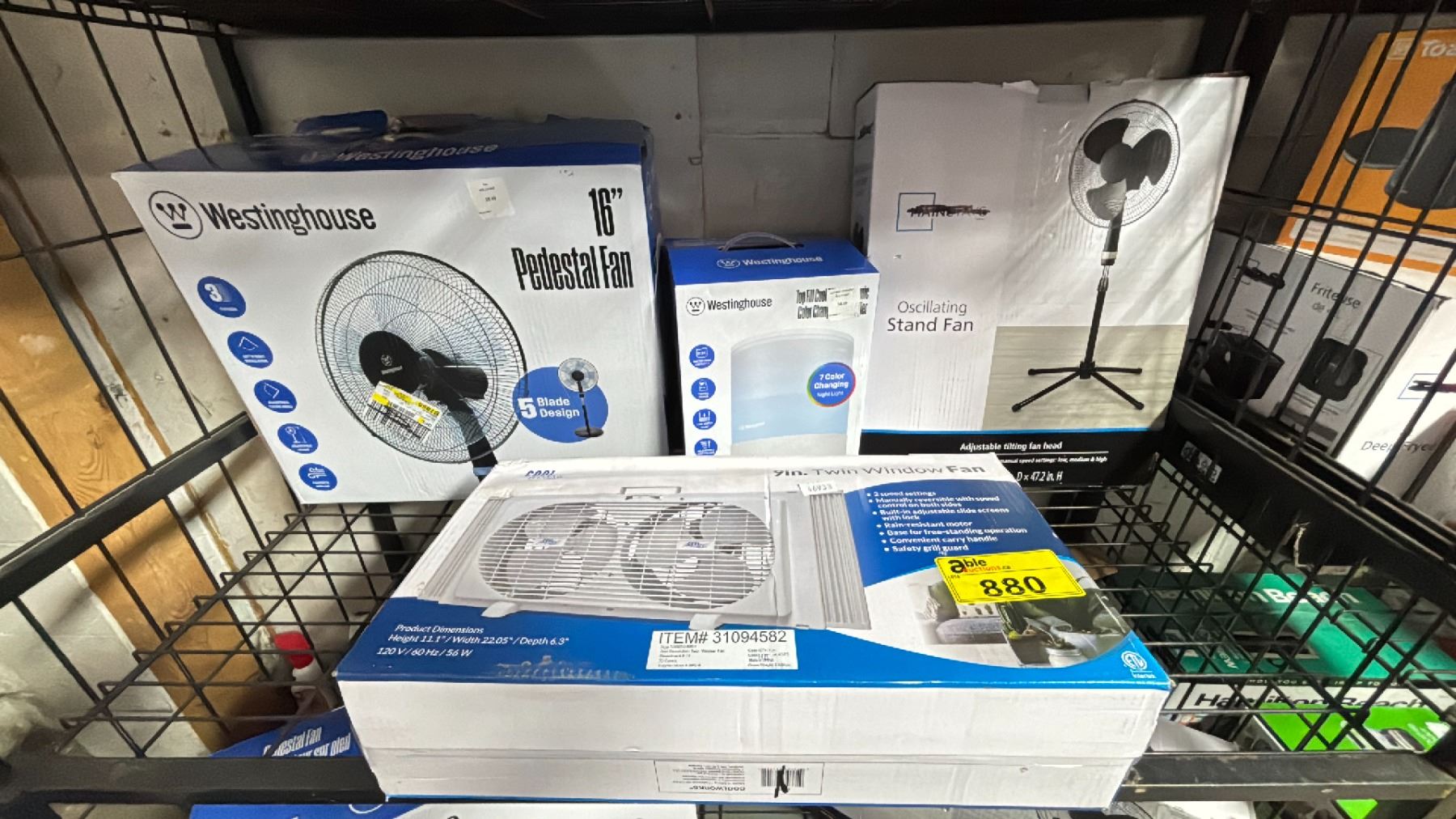 SHELF OF ASSORTED FANS & HUMIDIFIER