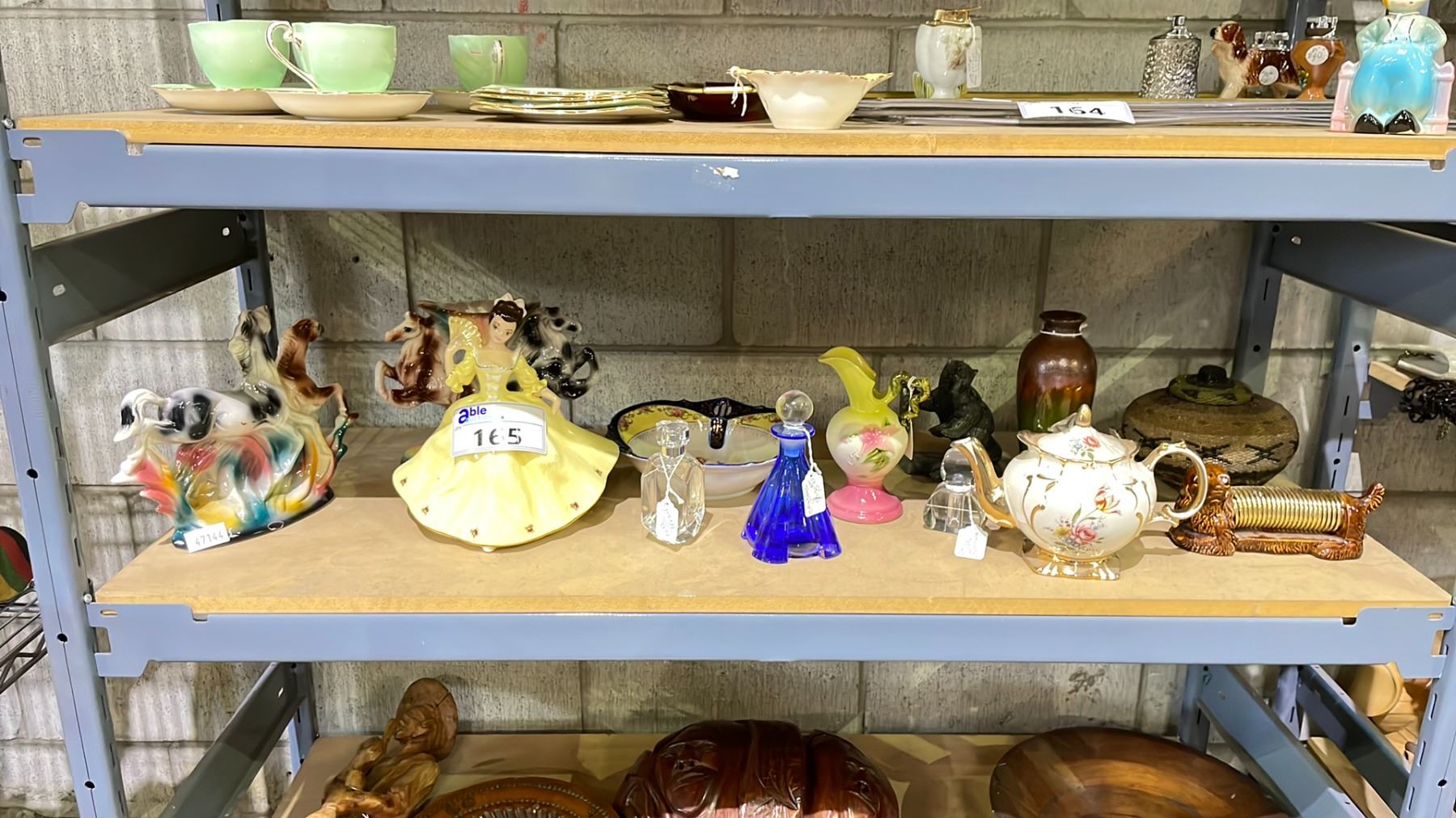 SHELF OF ASSORTED HOME DECOR ITEMS