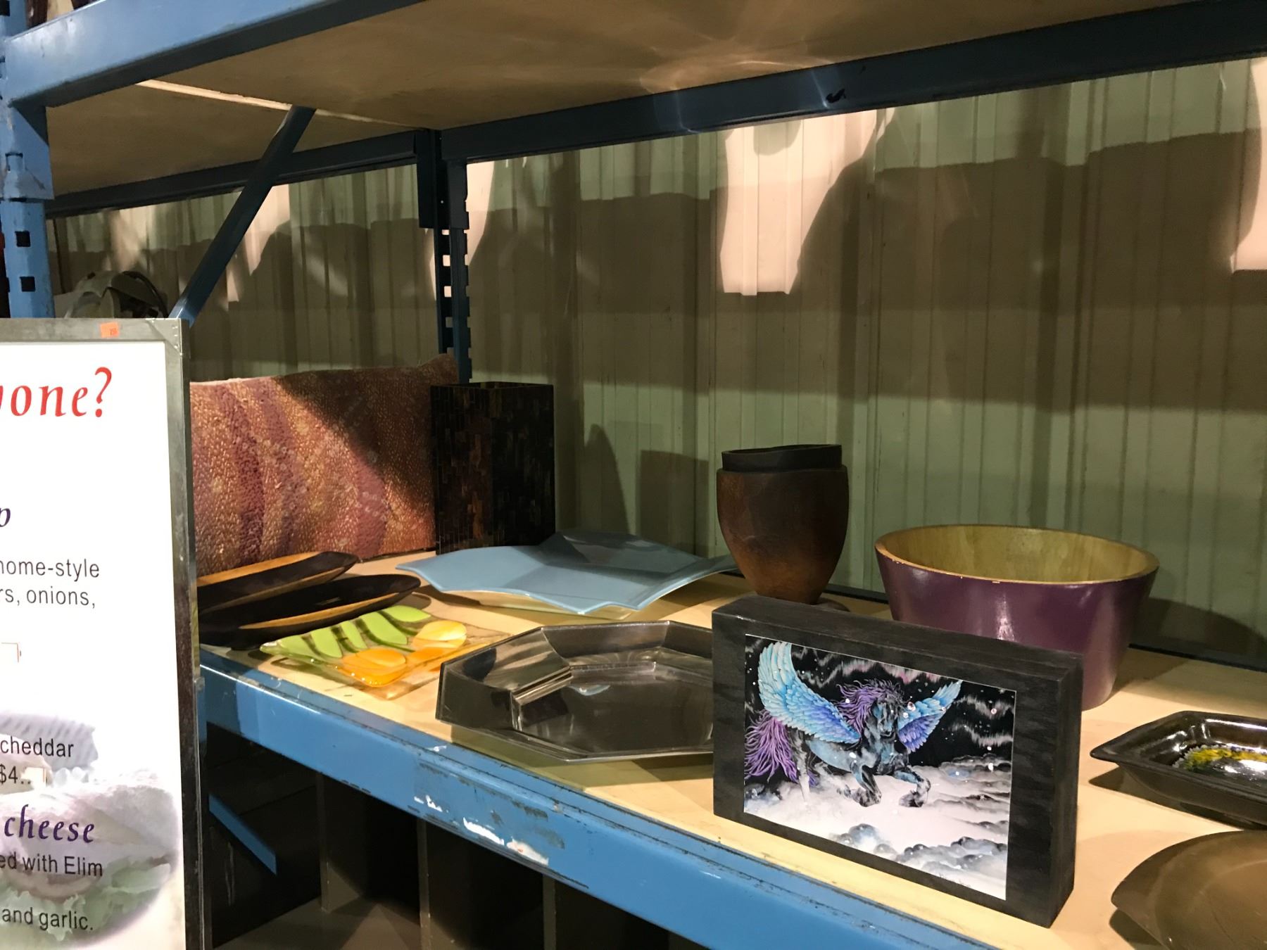 SHELF OF ASSORTED HOUSEHOLD PICTURES AND DECOR
