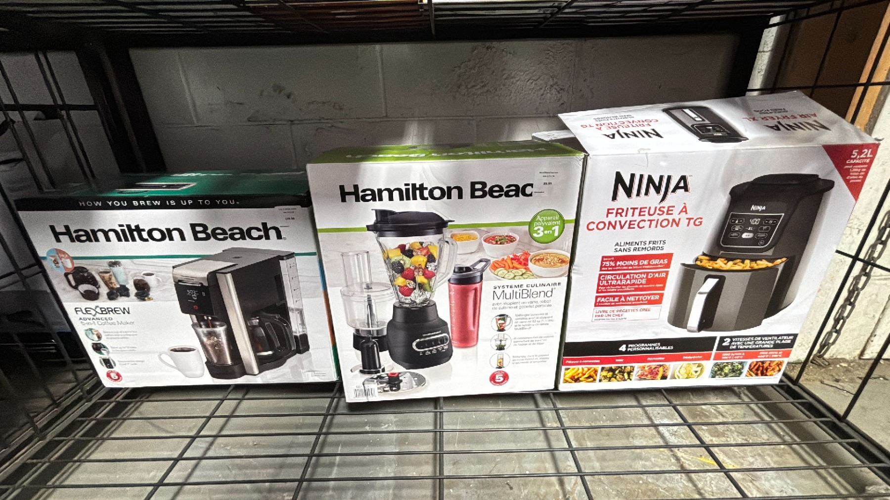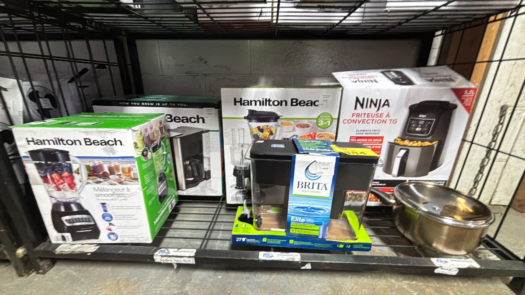 SHELF OF ASSORTED ITEMS INCLUDING; AIR FRYER, BLENDERS, BRITA WATER DISPENSER & MORE