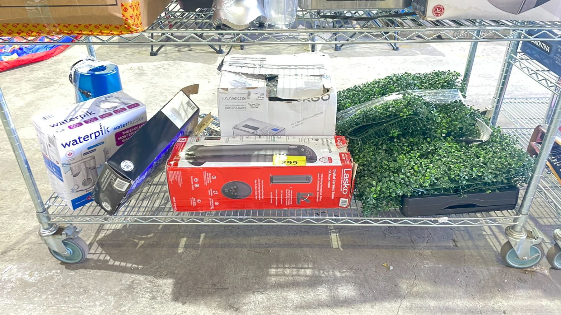 SHELF OF ASSORTED ITEMS INCLUDING; FAUX PLANT WALL, LASKO TOWER HEATER, CUCKOO BREAD MAKER & MORE (UNKNOWN WORKING CONDITION, MAY BE MISSING PARTS & PIECES)