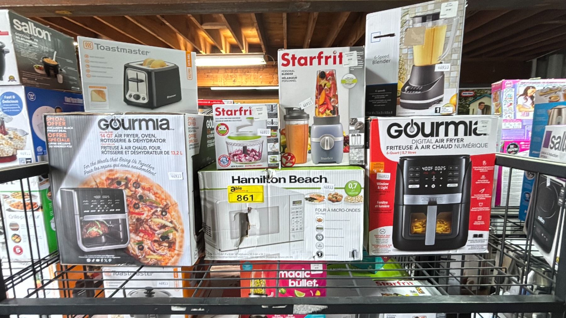 SHELF OF ASSORTED ITEMS INCLUDING; GOURMIA ALL-IN-ONE AIR FRYER, HAMILTON BEACH MICROWAVE, STARFRIT PERSONAL BLENDER & MORE