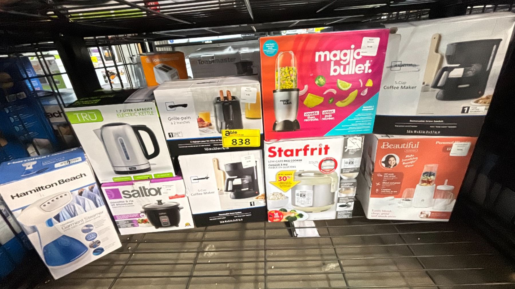 SHELF OF ASSORTED ITEMS INCLUDING; MAGIC BULLET BLENDER, LOW-CARB RICE COOKER, COFFEE MAKER & MORE