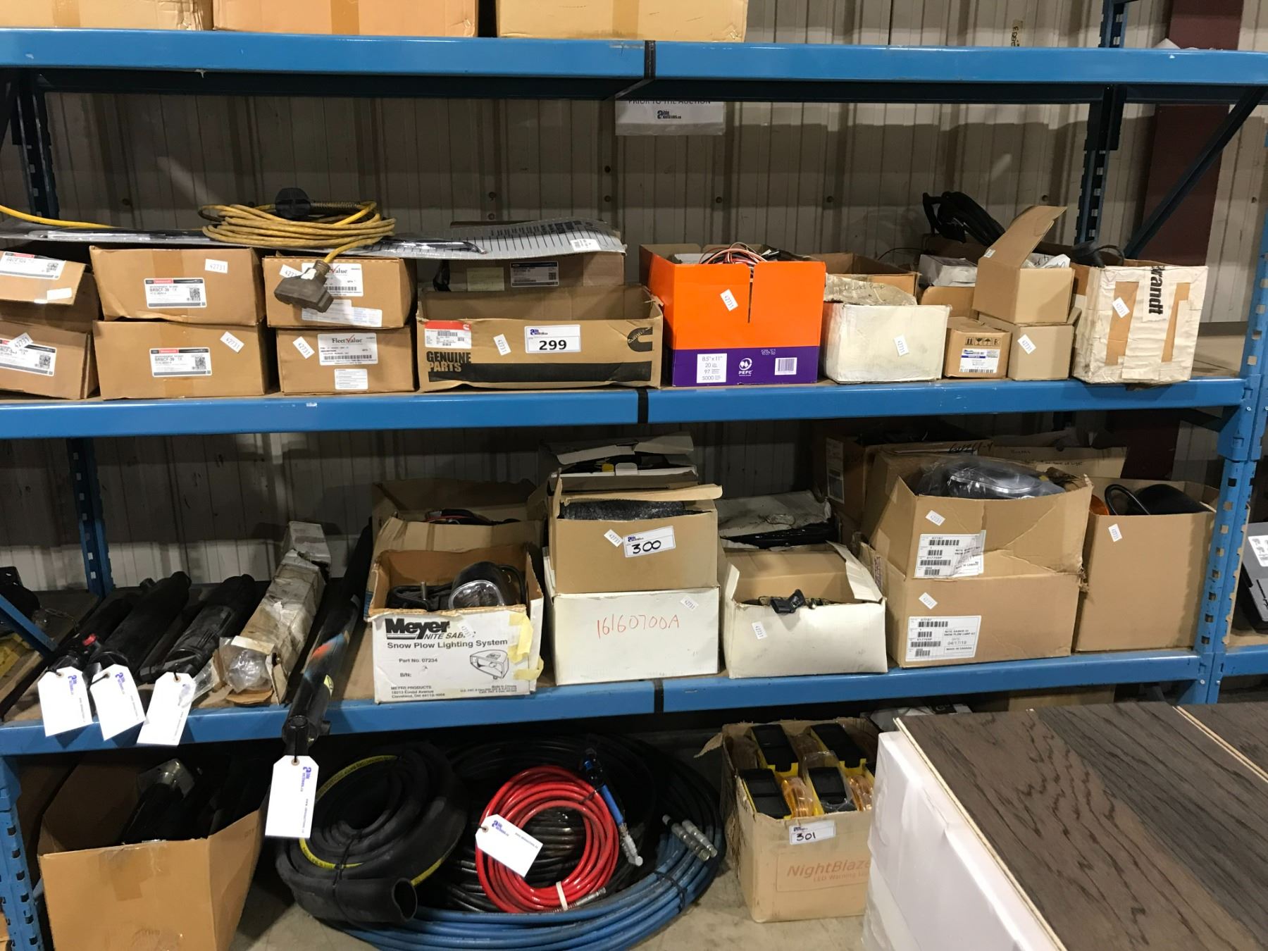 SHELF OF ASSORTED LIGHTS AND CONTROL ARMS