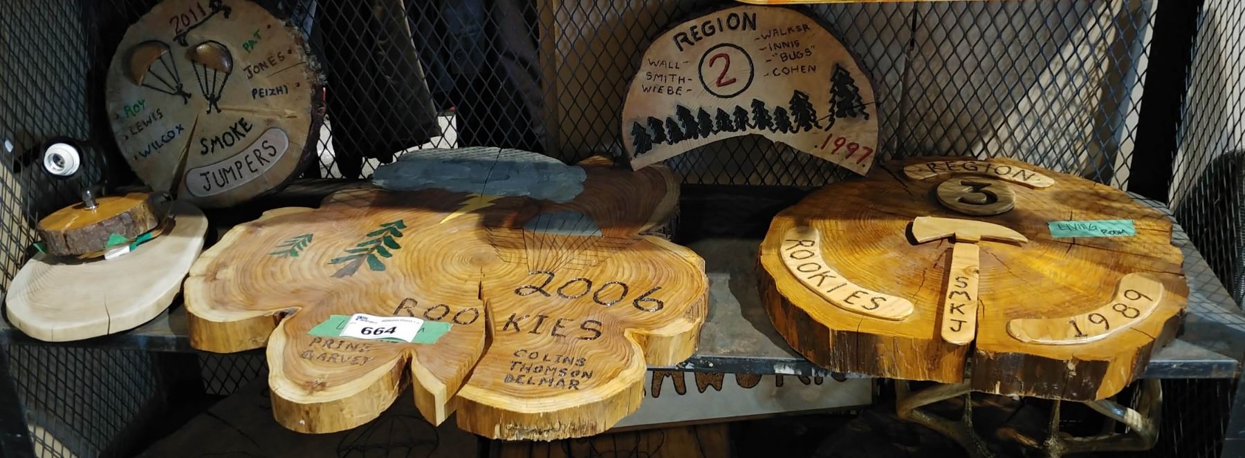 SHELF OF ASSORTED LIVE EDGE PLAQUES AND MORE