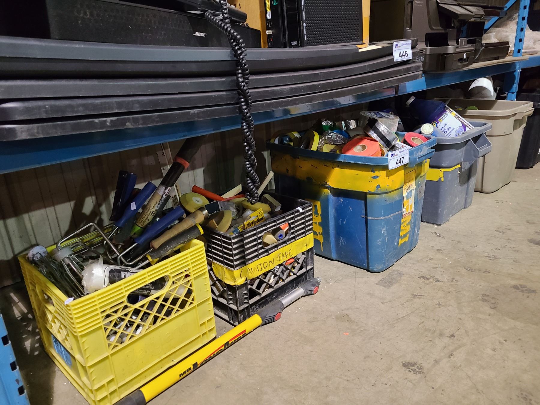 SHELF OF ASSORTED PAINTS, TAPE & PAINTERS PRODUCTS