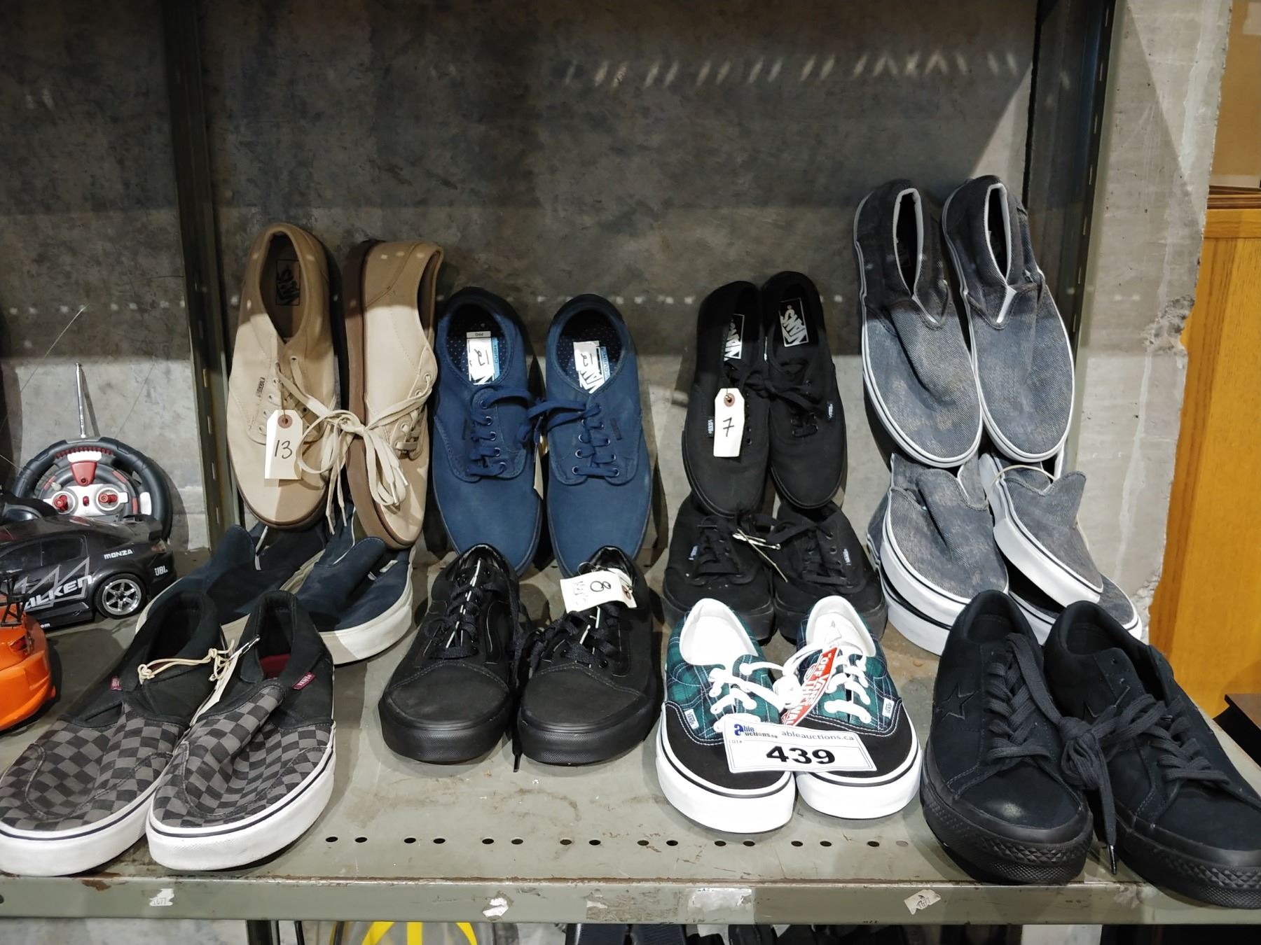 SHELF OF ASSORTED SHOES INCLUDING VANS AND MORE