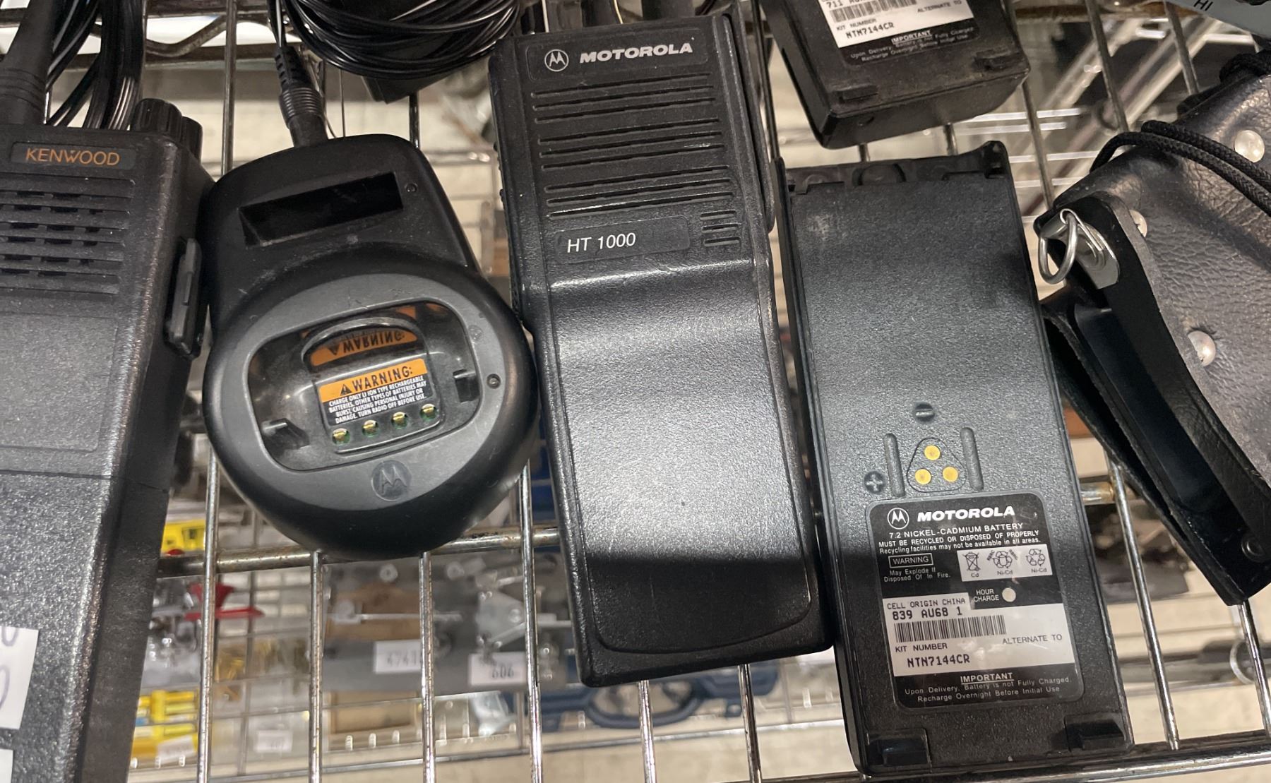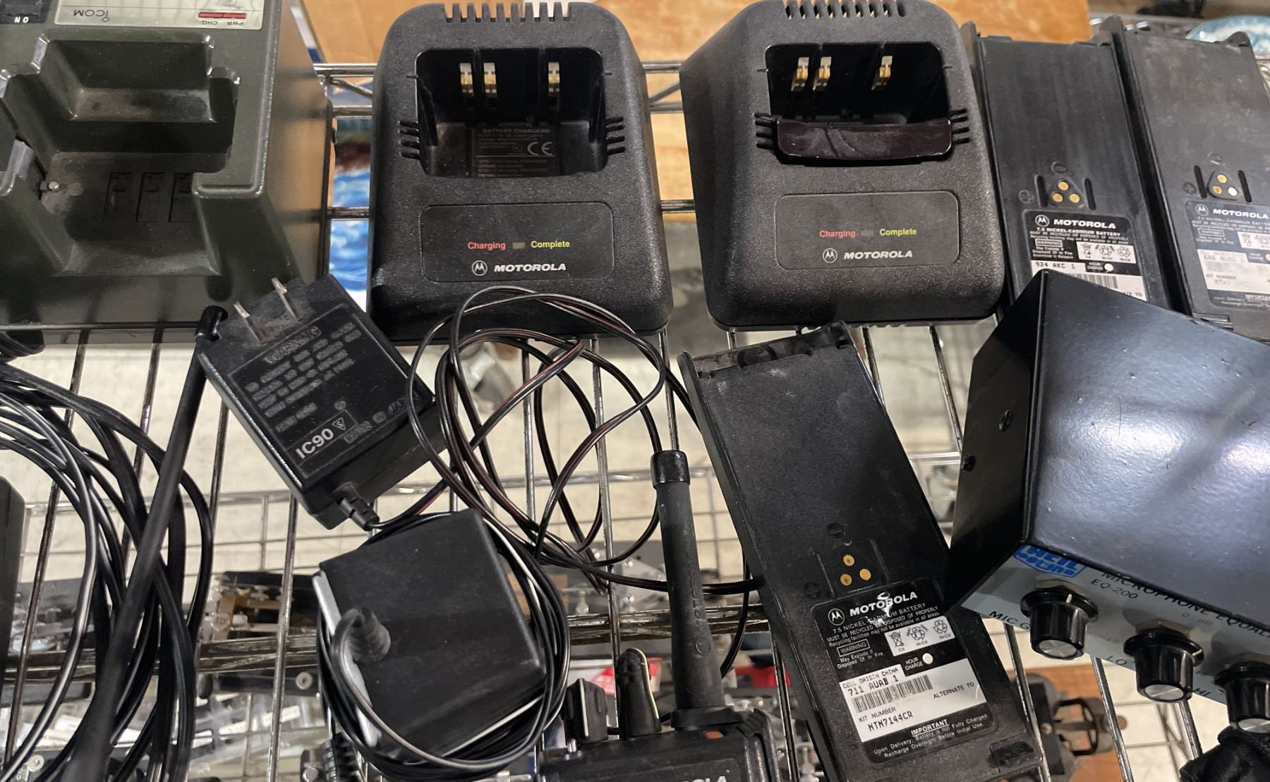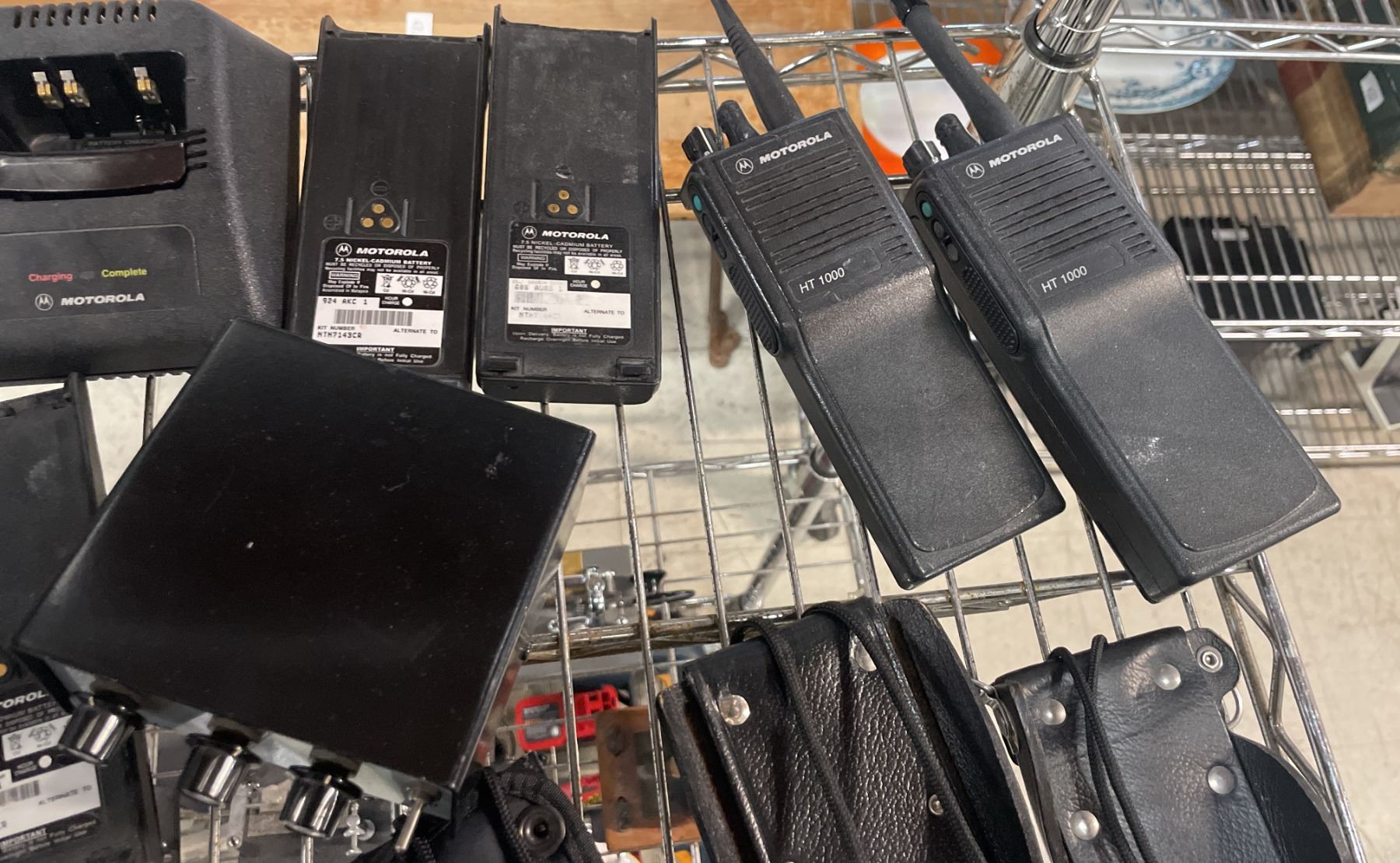 SHELF OF ASSORTED WALKIE TALKIES *SOME CHARGERS INCLUDED*