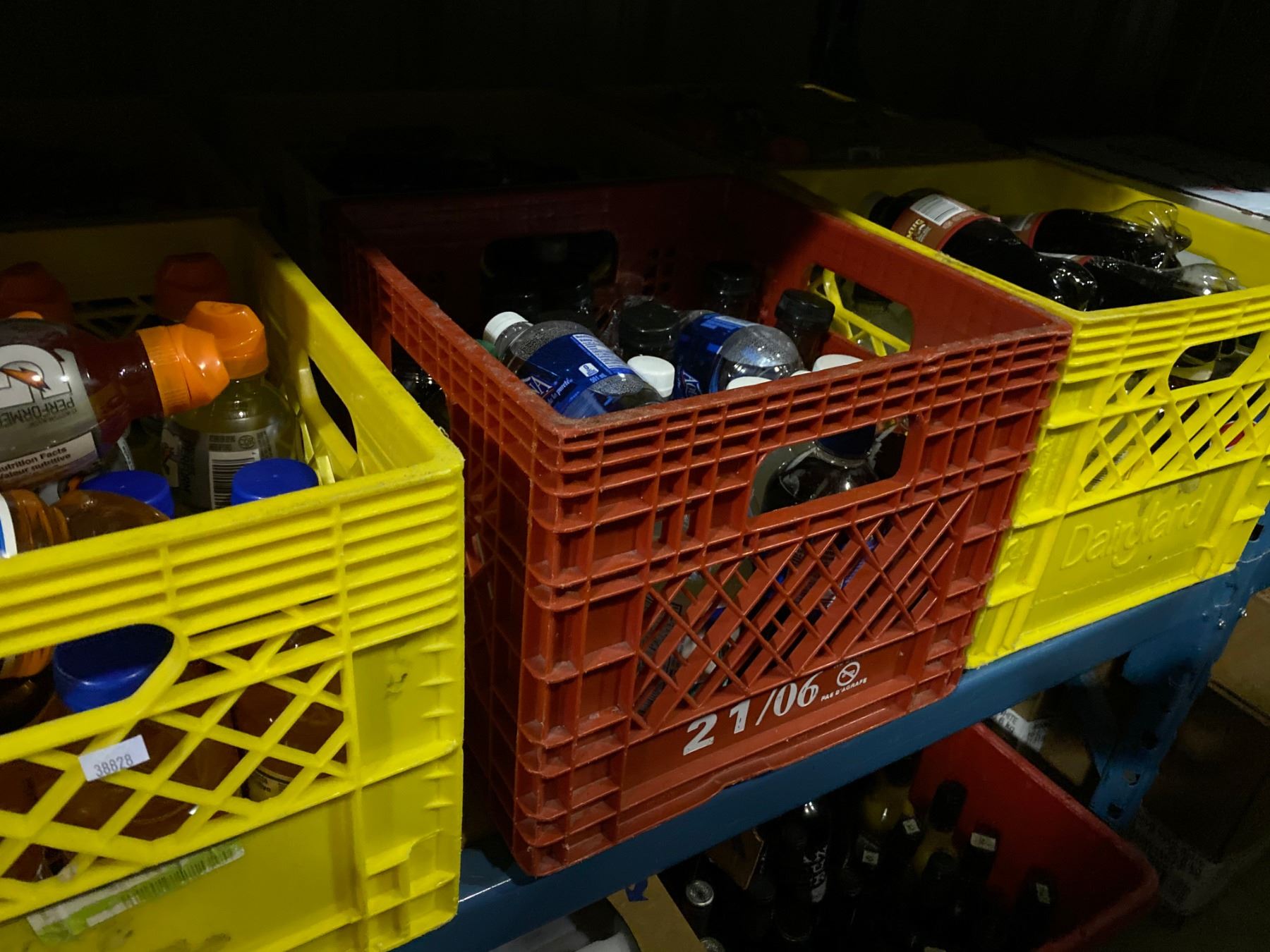 SHELF OF ASSORTED WATER, SODA & JUICES