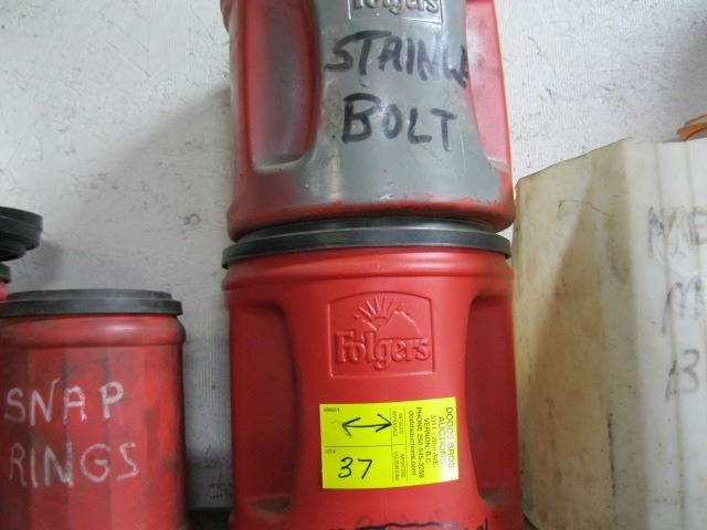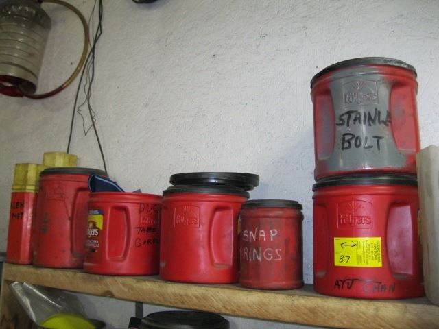 SHELF OF ASST. CONTAINERS & CONTENTS, SNAP RINGS, CAR PARTS, ETC.
