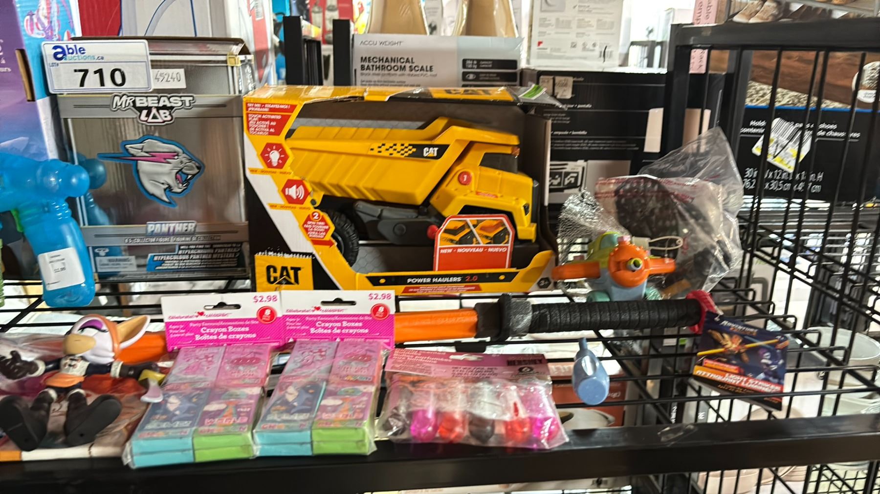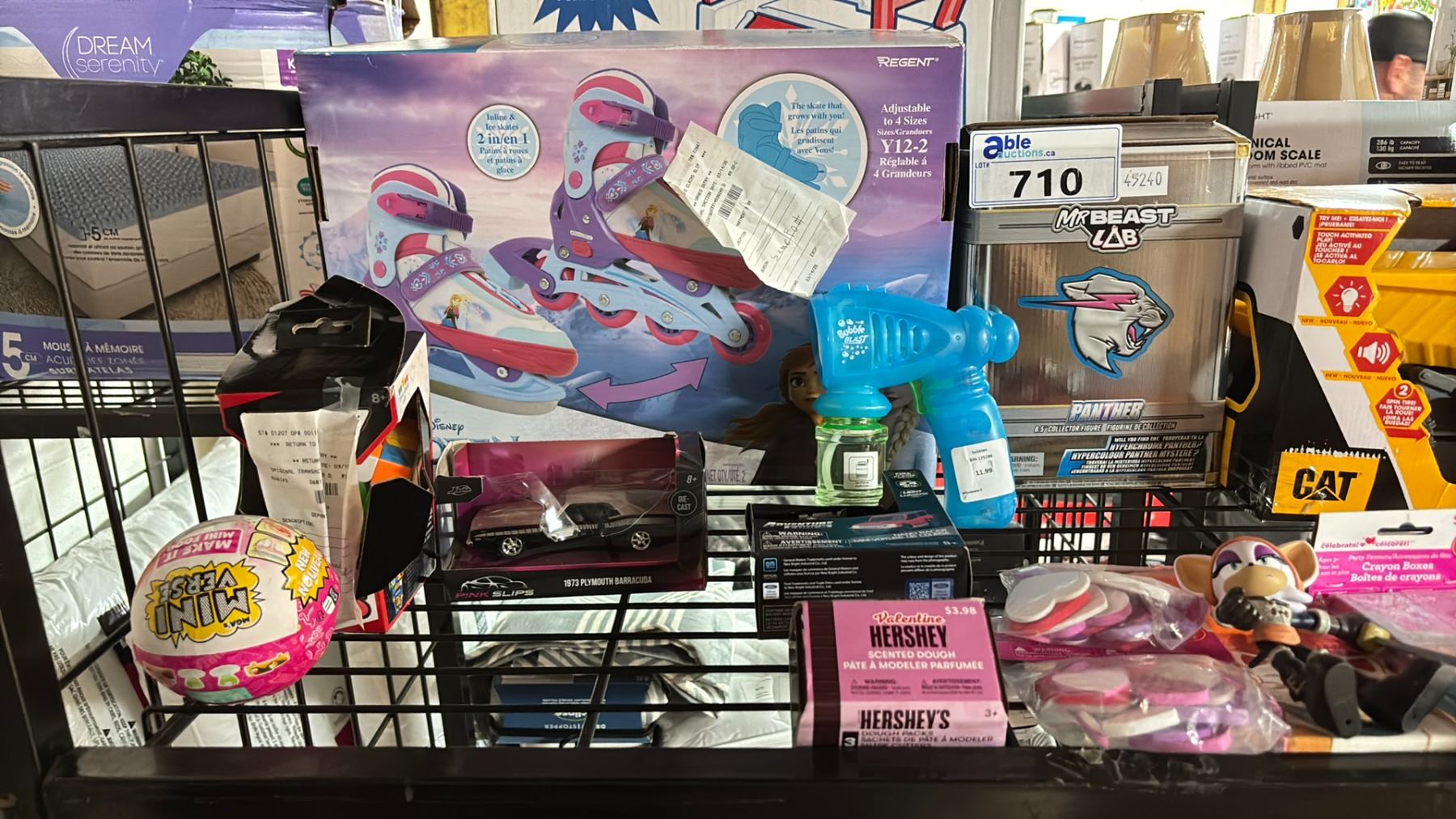 SHELF OF CHILDRENS FIGURE SKATES, CHILDRENS TOYS & MORE