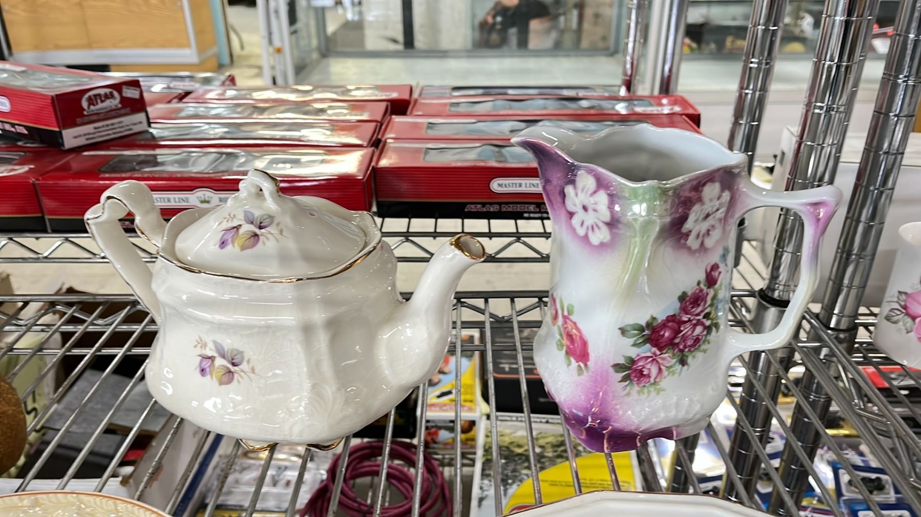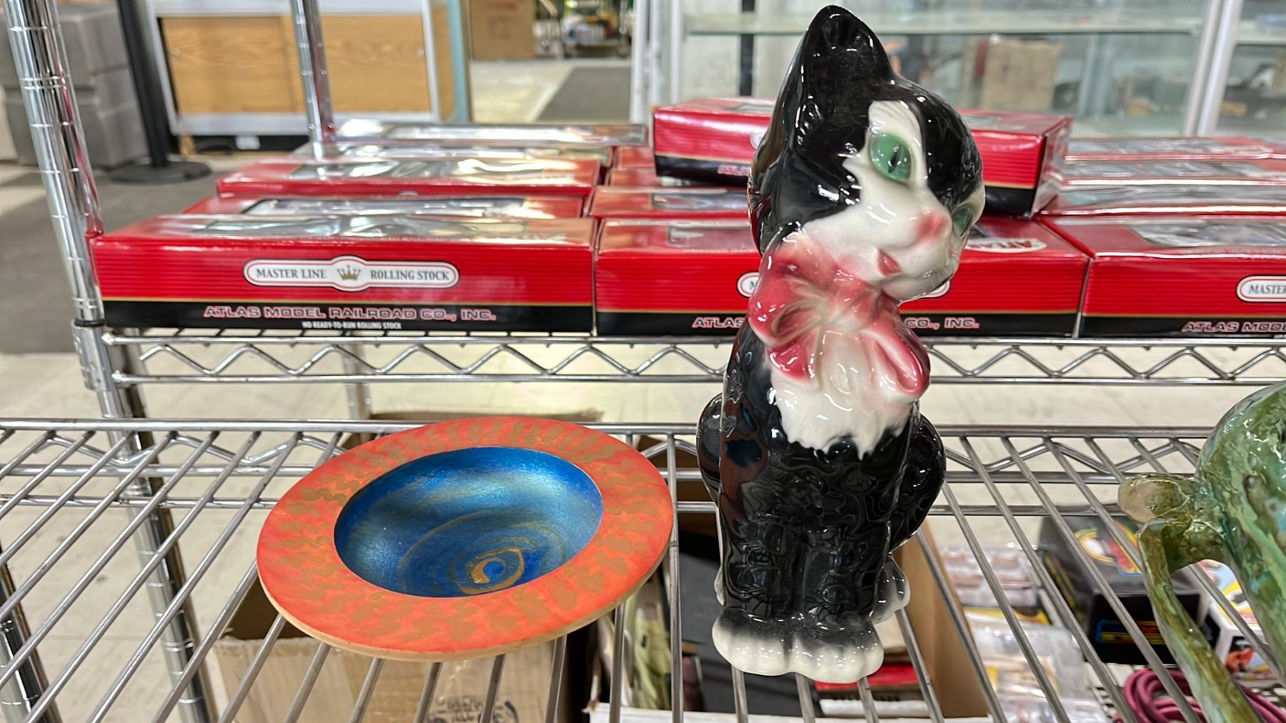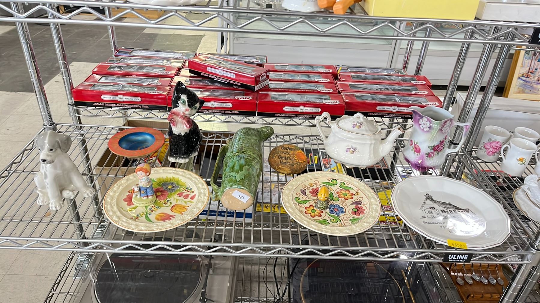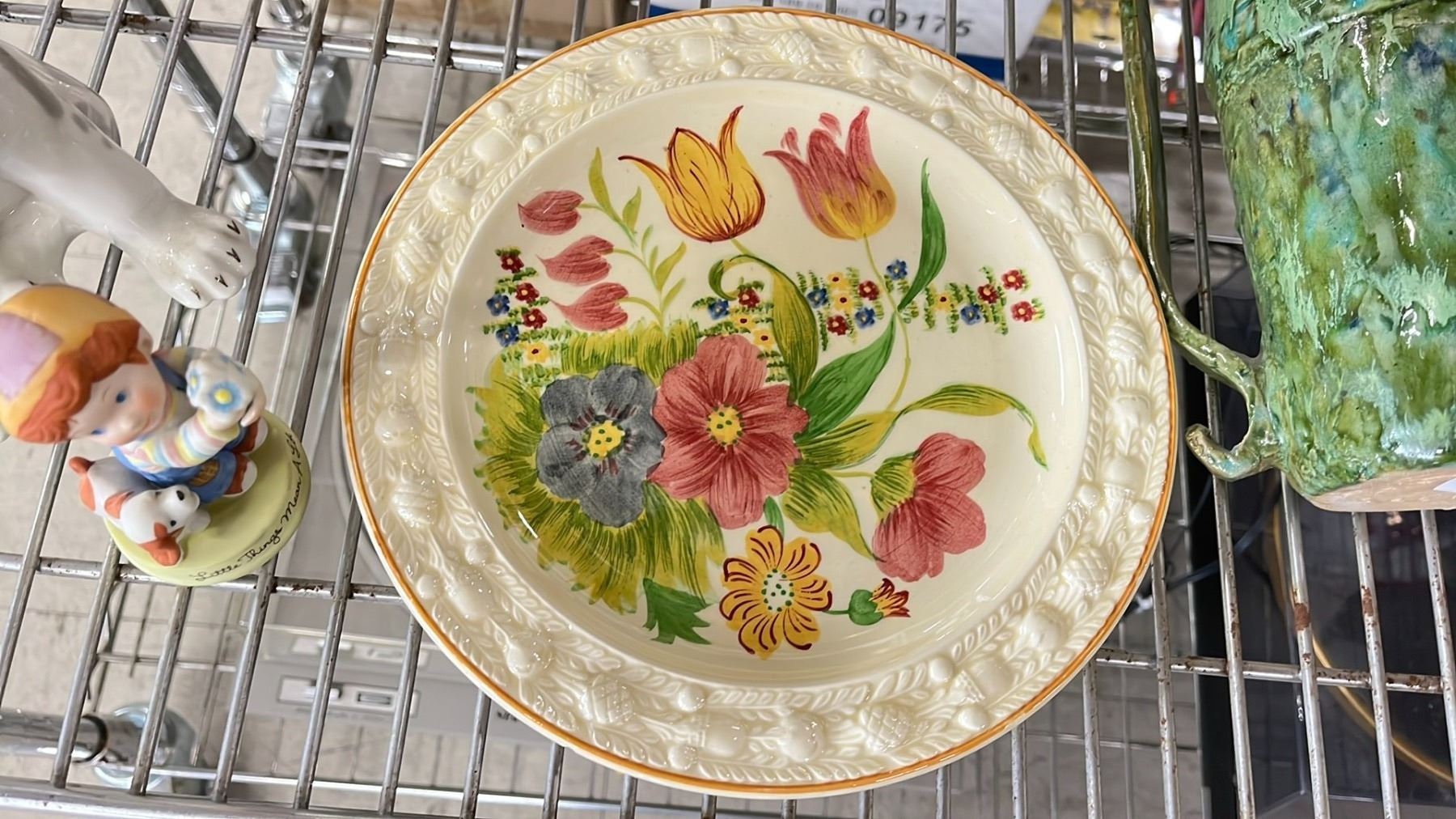 SHELF OF DECOR ITEMS & DECORATIVE PLATES