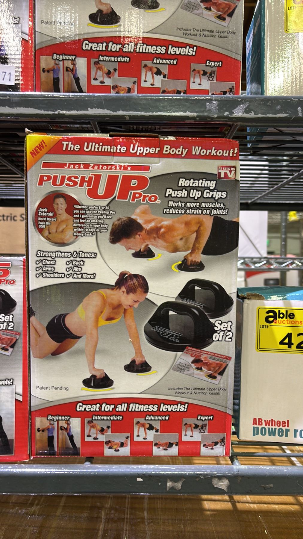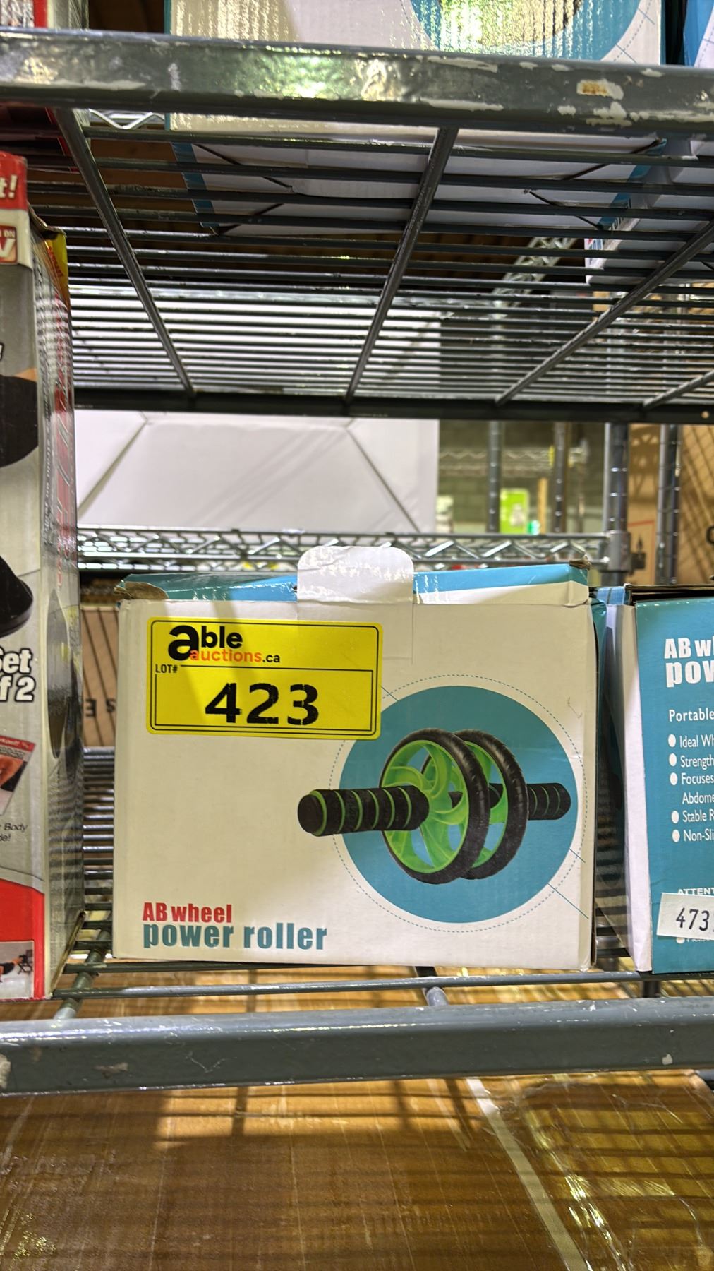 SHELF OF PUSH UP PROS & AB WHEEL POWER ROLLERS
