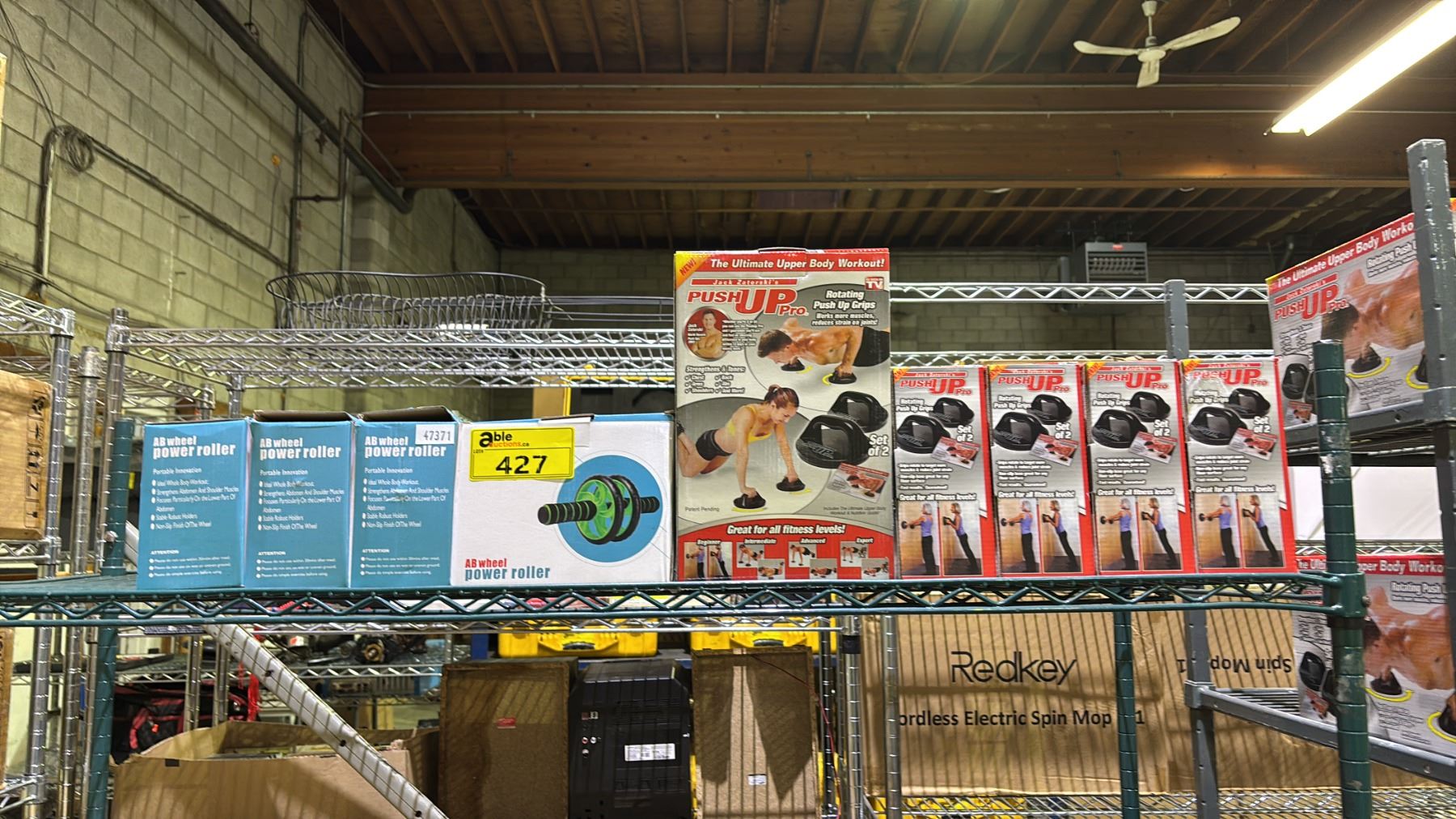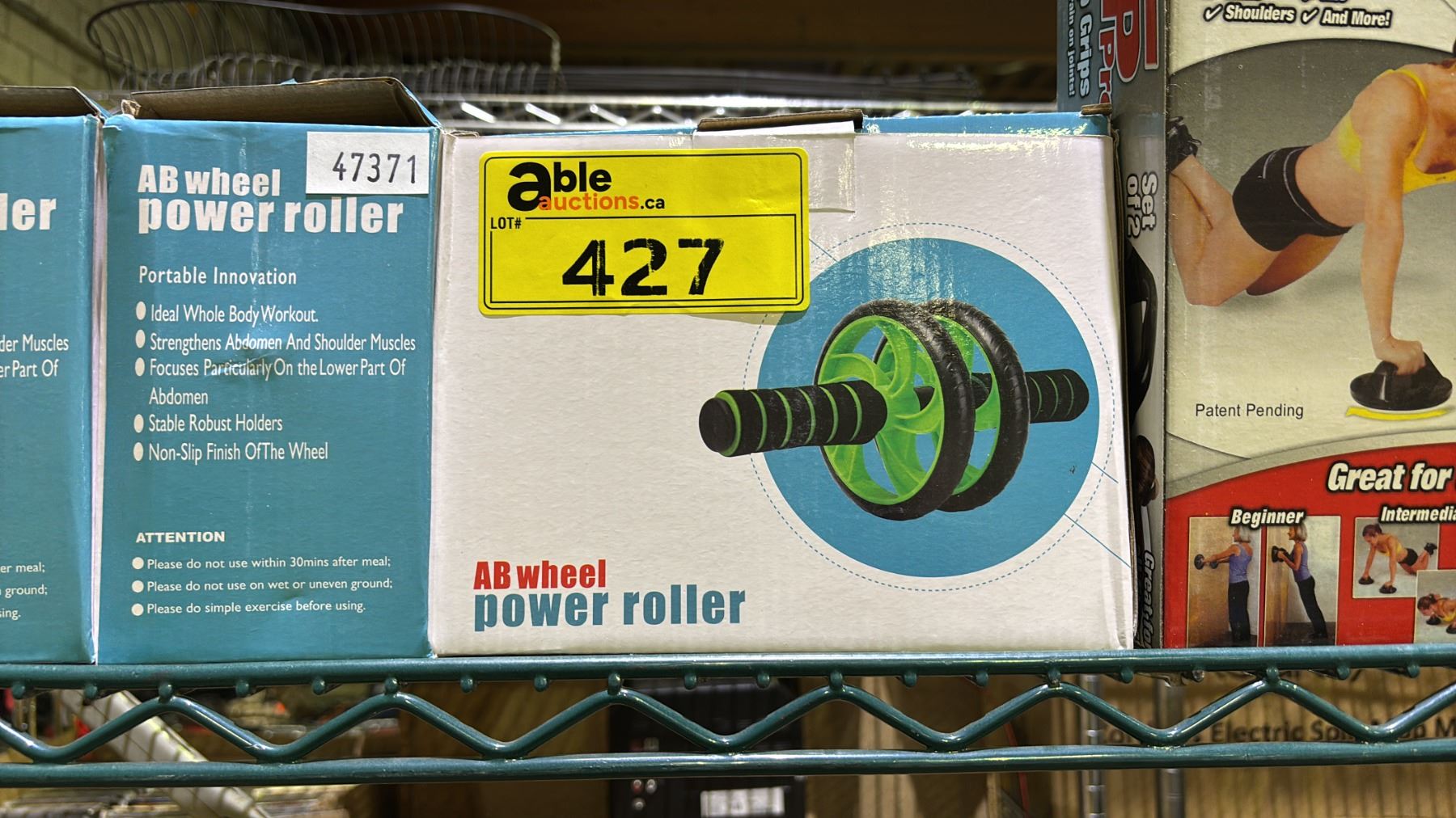 SHELF OF PUSH UP PROS & AB WHEEL POWER ROLLERS