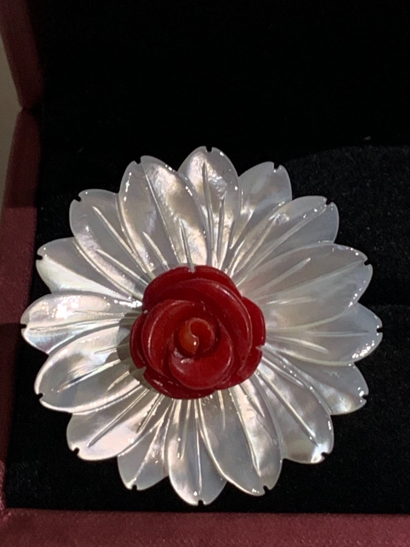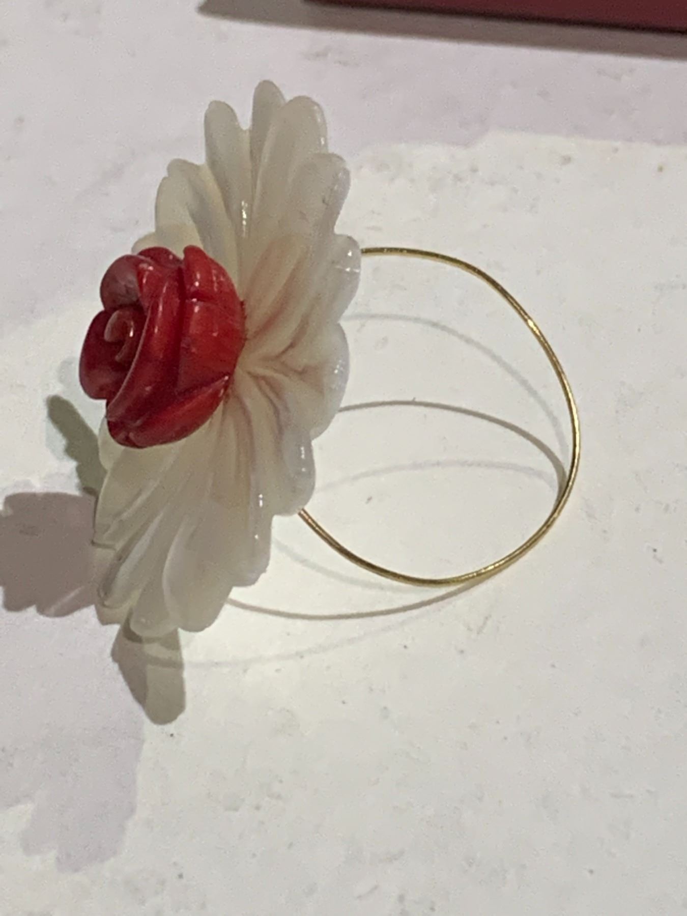 SHELL AND SANHY CORAL BEADS LADY'S RING