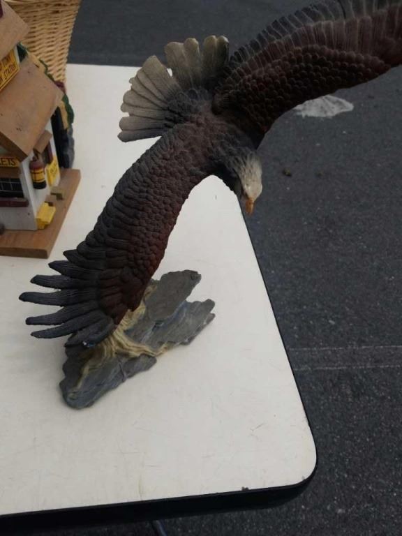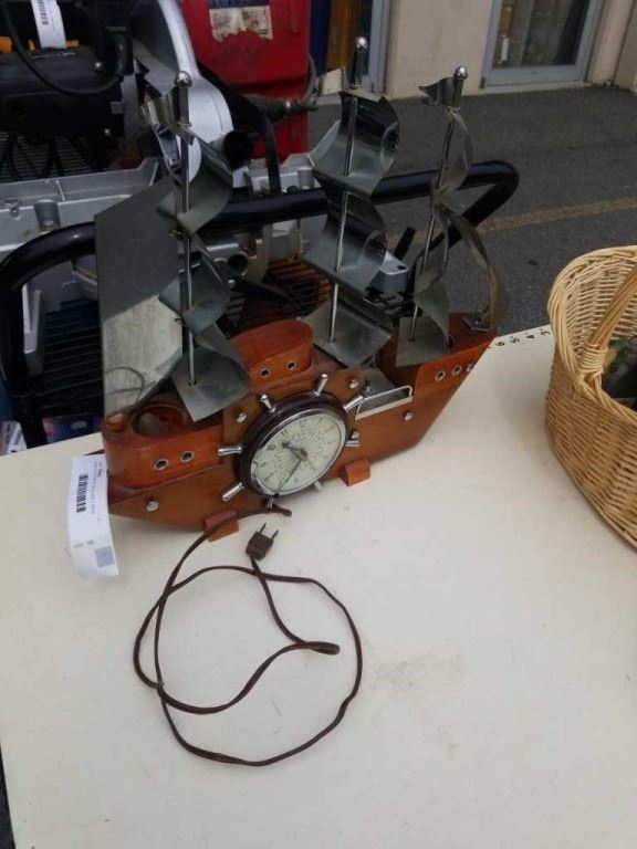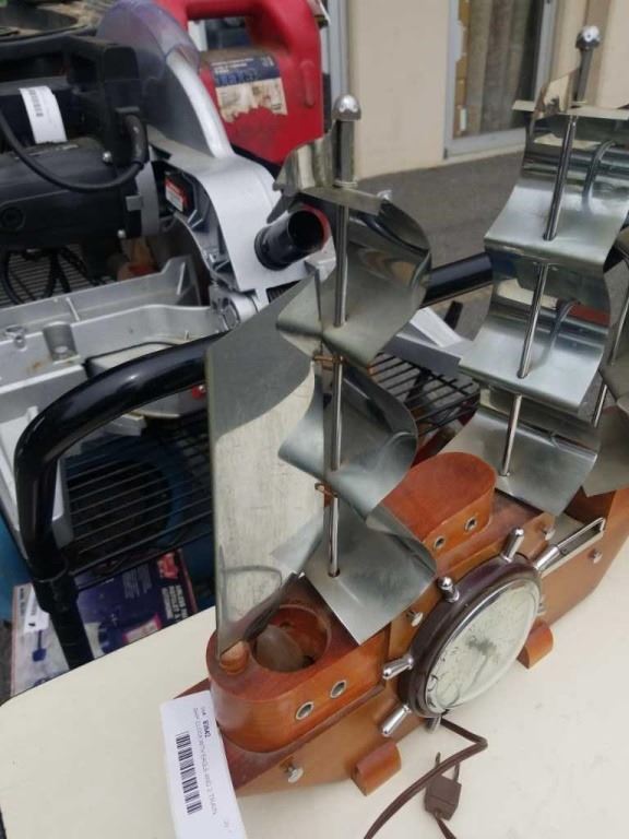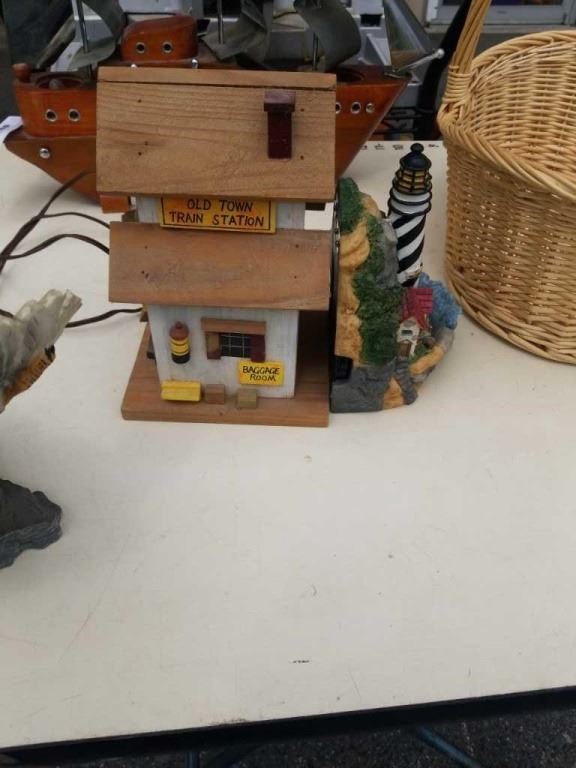 SHIP CLOCK WITH EAGLE AND 2 TRAIN STATION STATUES