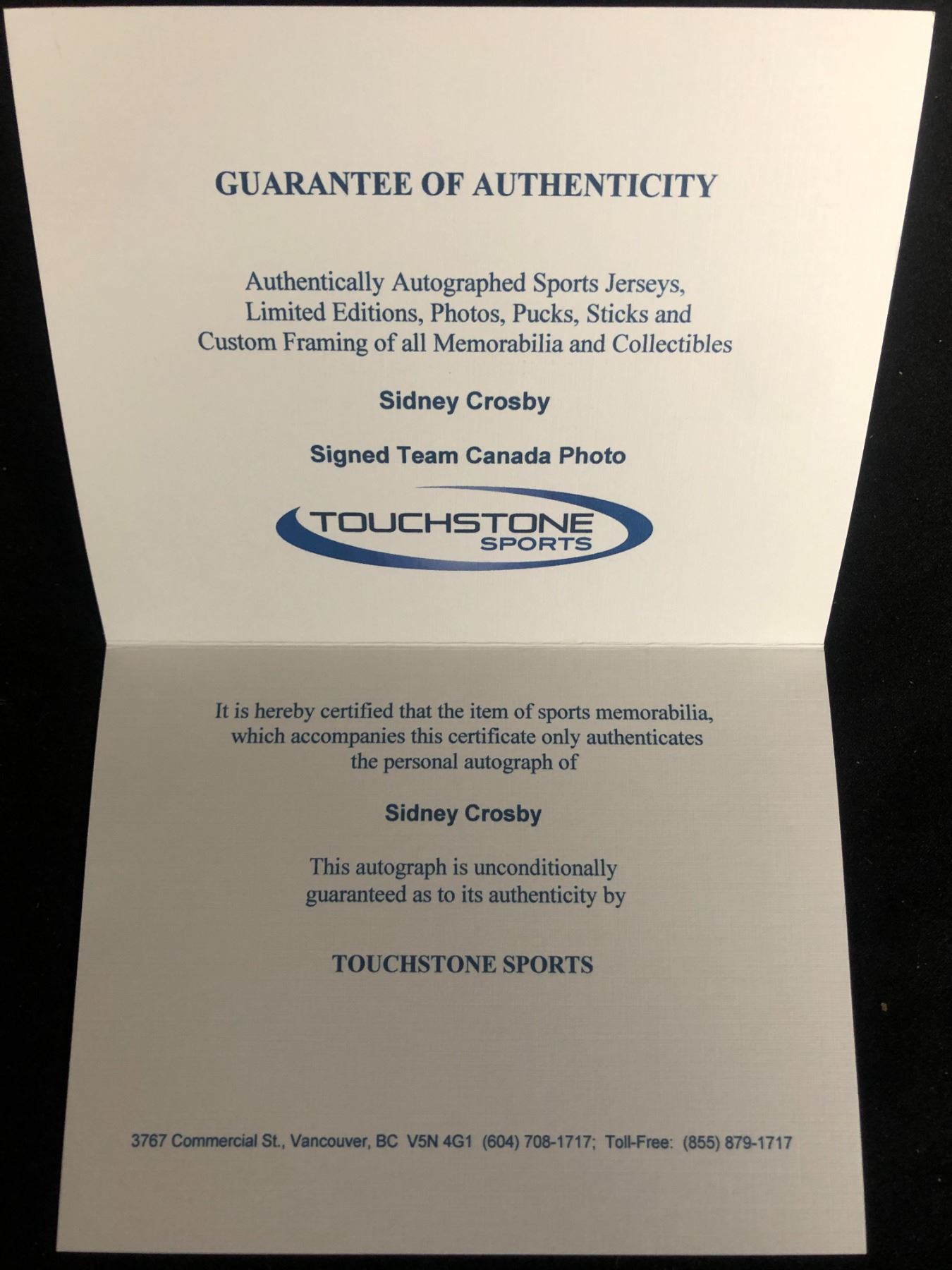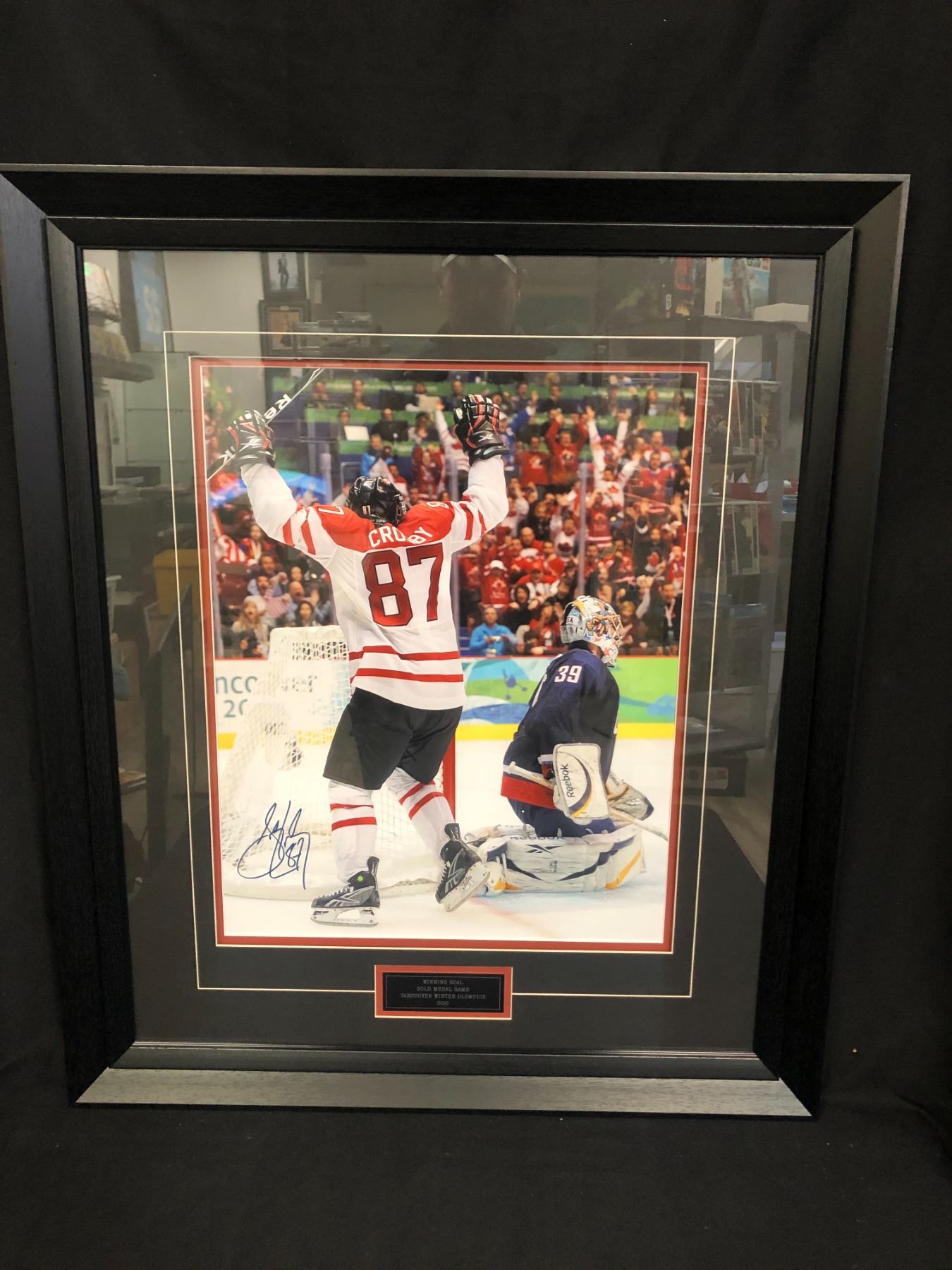 SIDNEY CROSBY SIGNED GOLDEN GOAL 24 X 30 FRAMED DISPLAY (TOUCHSTONE COA)