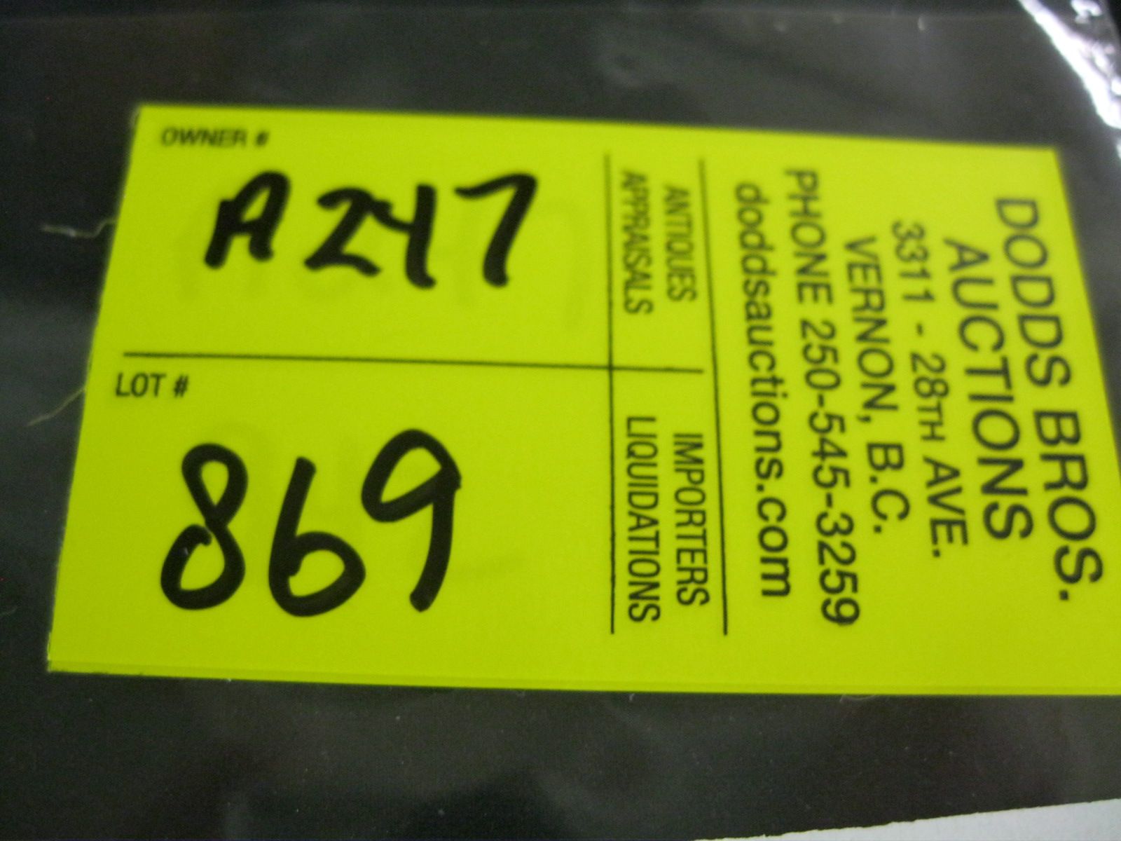 If paying by e-transfer, send e-transfer to: bob@doddsauction.com (AUTO-DEPOSITED)