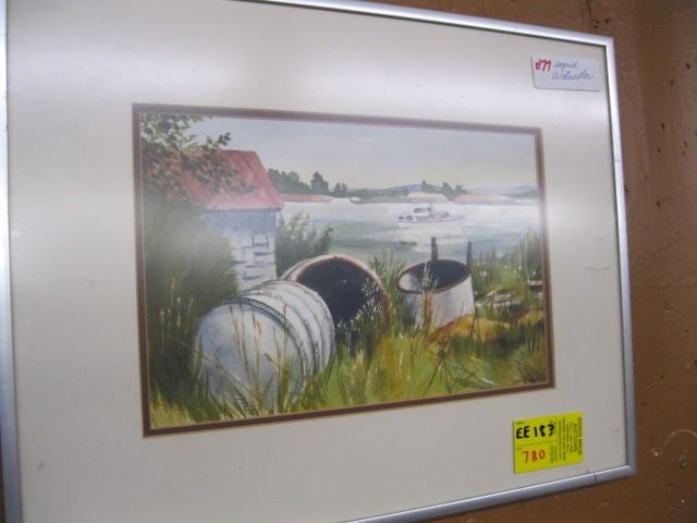 SIGNED WATERCOLOUR OF THE OLD BARRELS & BOAT