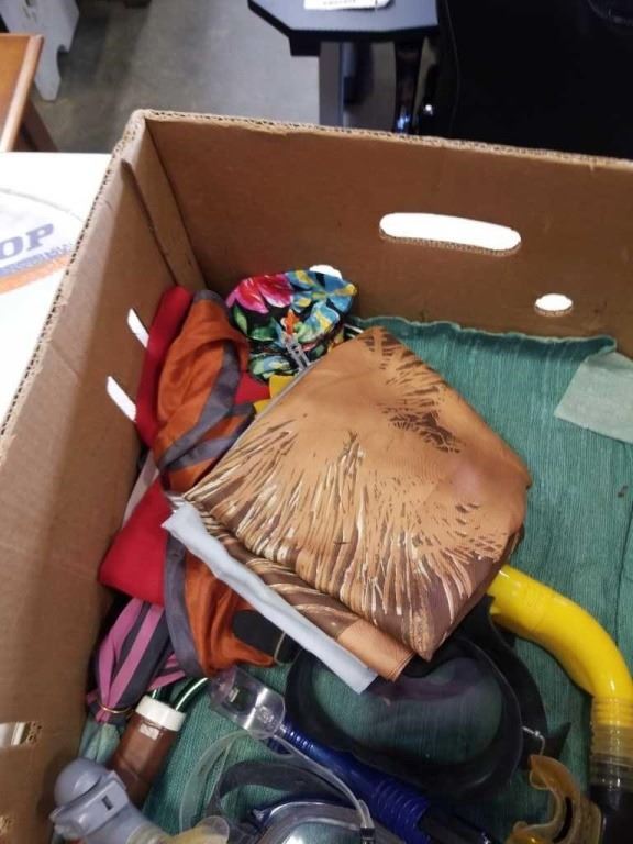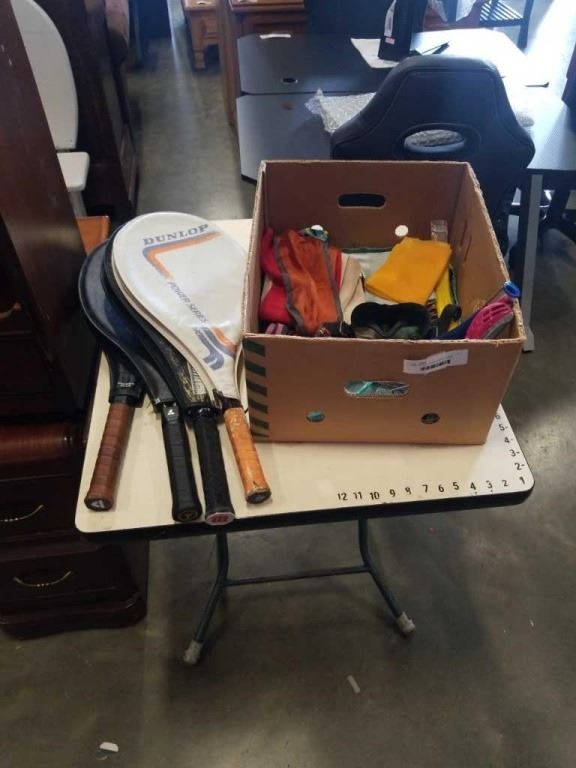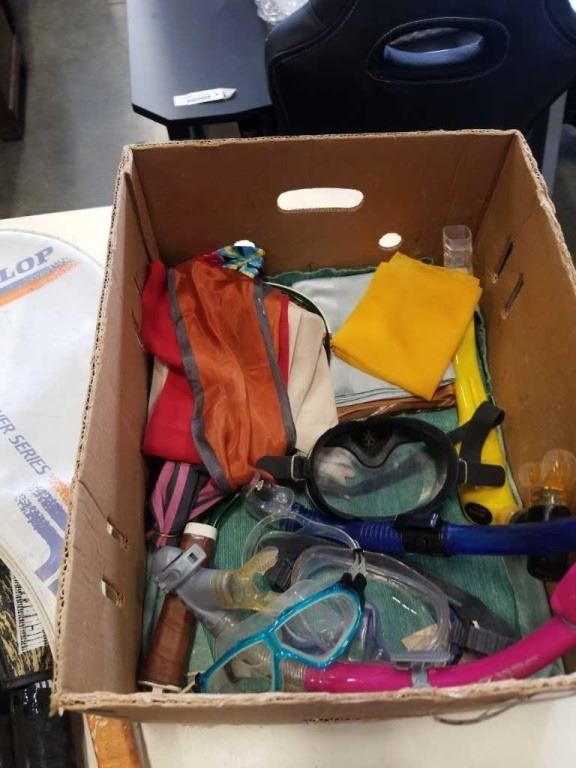 SILK SCARVES, TENNIS RACKETS AND SNORKELS AND MASKS