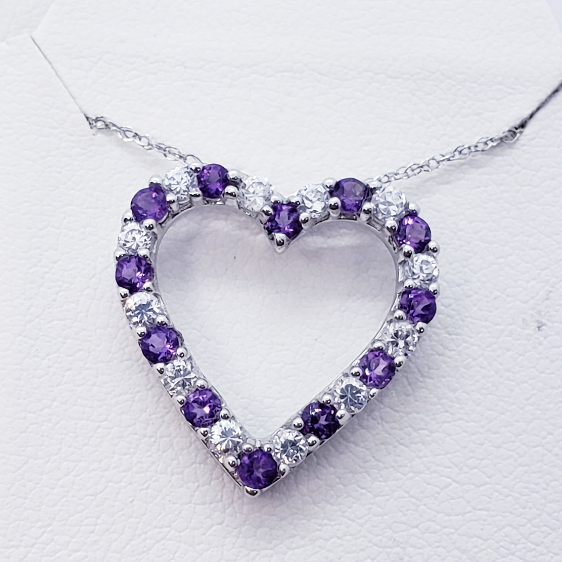 SILVER AMETHYST CZ HEART SHAPED NECKLACE