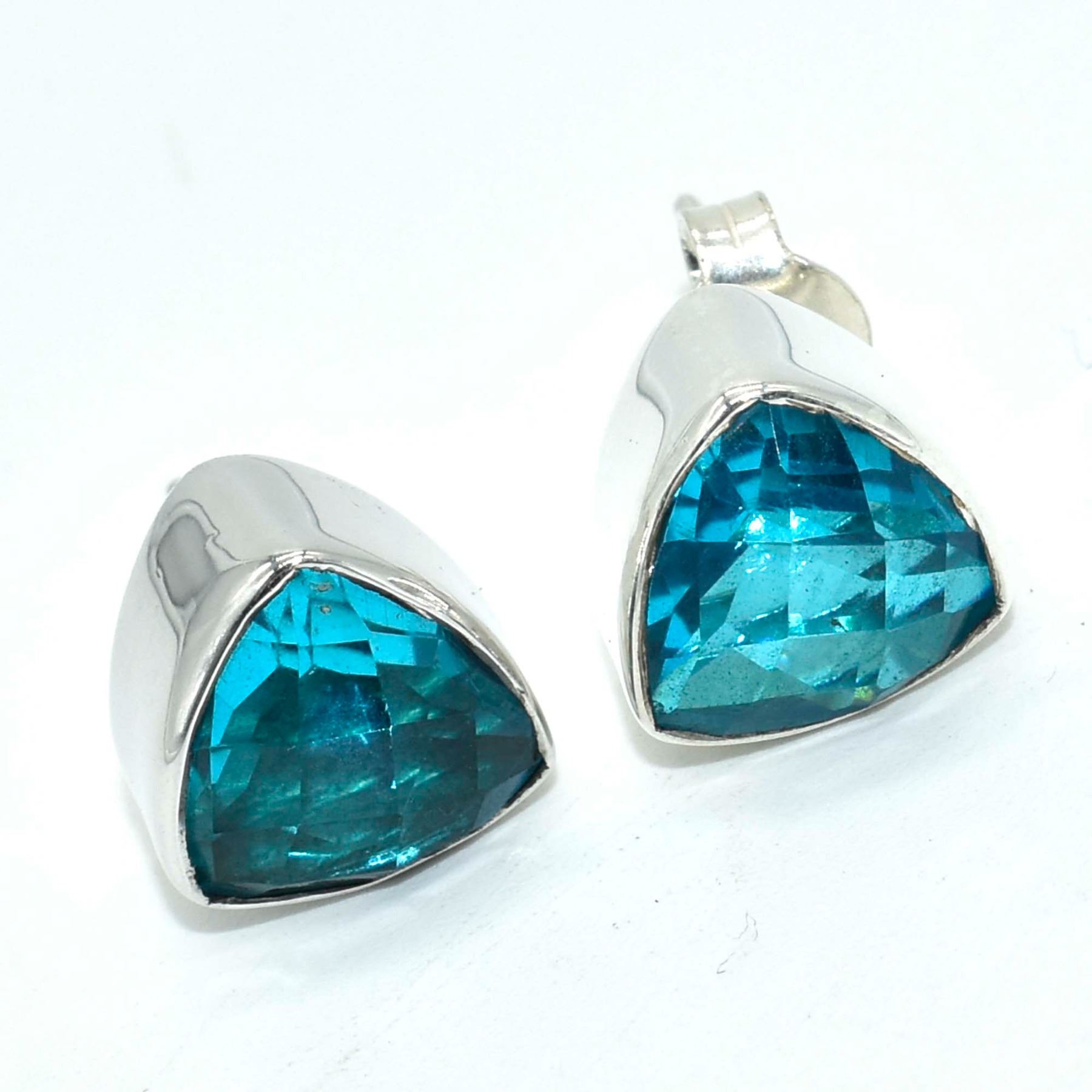 SILVER BLUE QUARTZ(2.45CT) HAND MADE EARRINGS (~WEIGHT 4.5G)