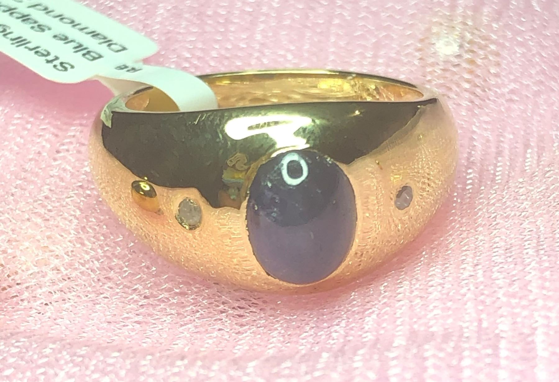 SILVER BLUE SAPPHIRE AND DIAMOND 2.1CT RING