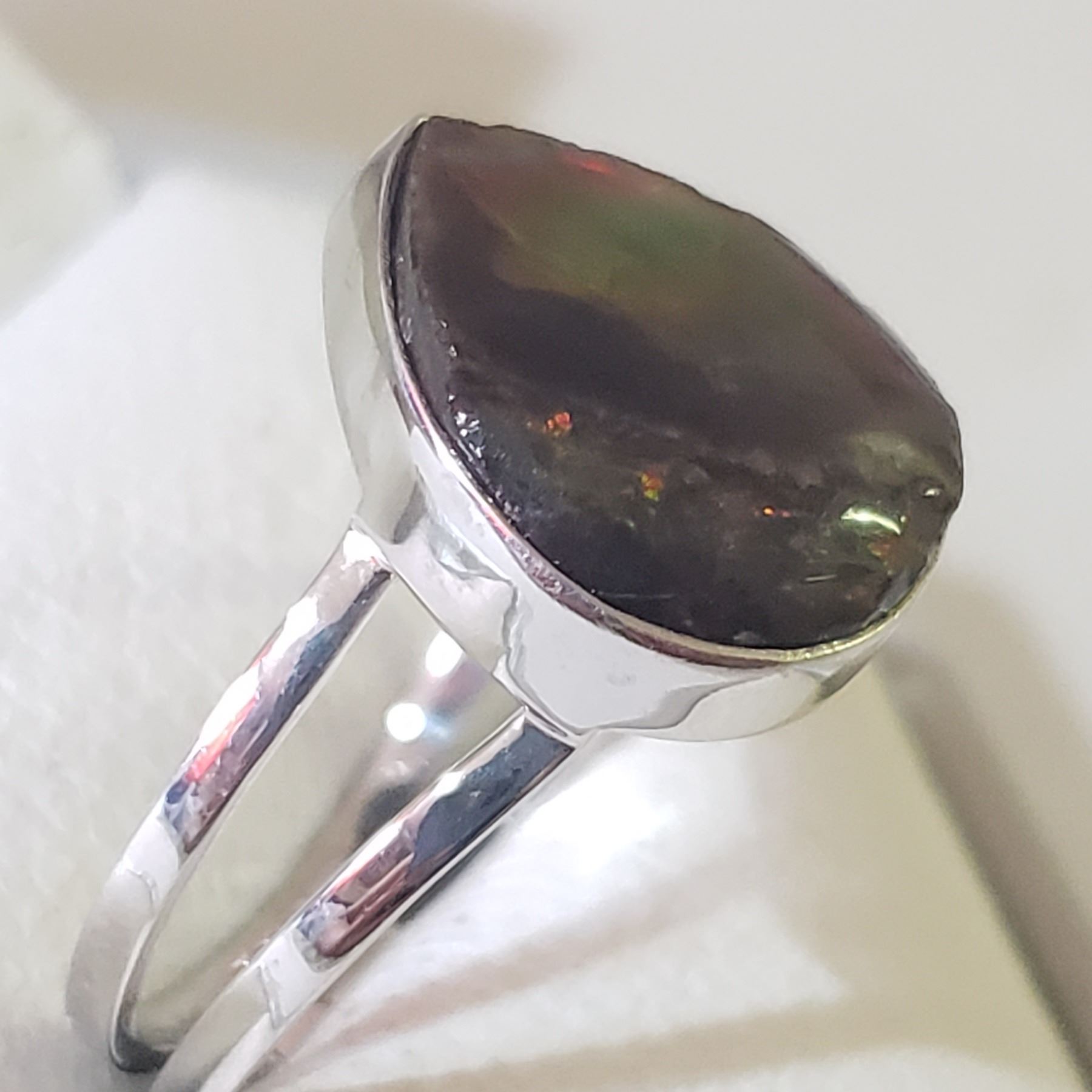 SILVER CANADIAN AMMOLITE RING SIZE 9