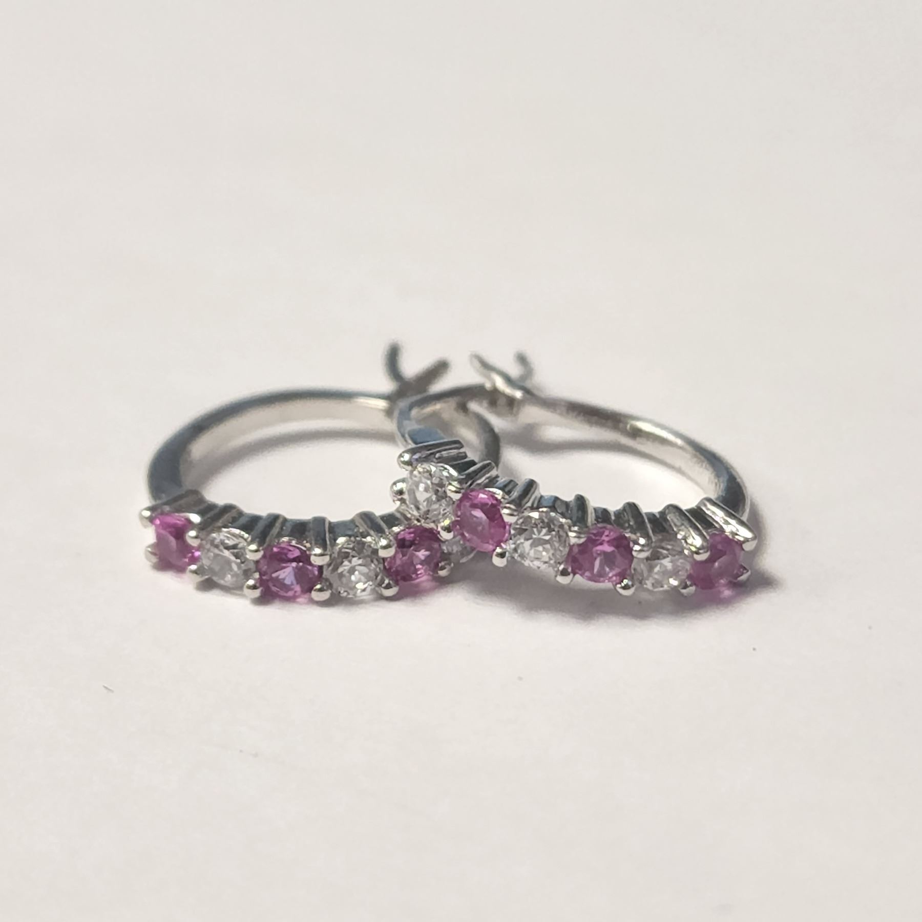 SILVER CREATED PINK SAPPHIRE HOOP EARRINGS