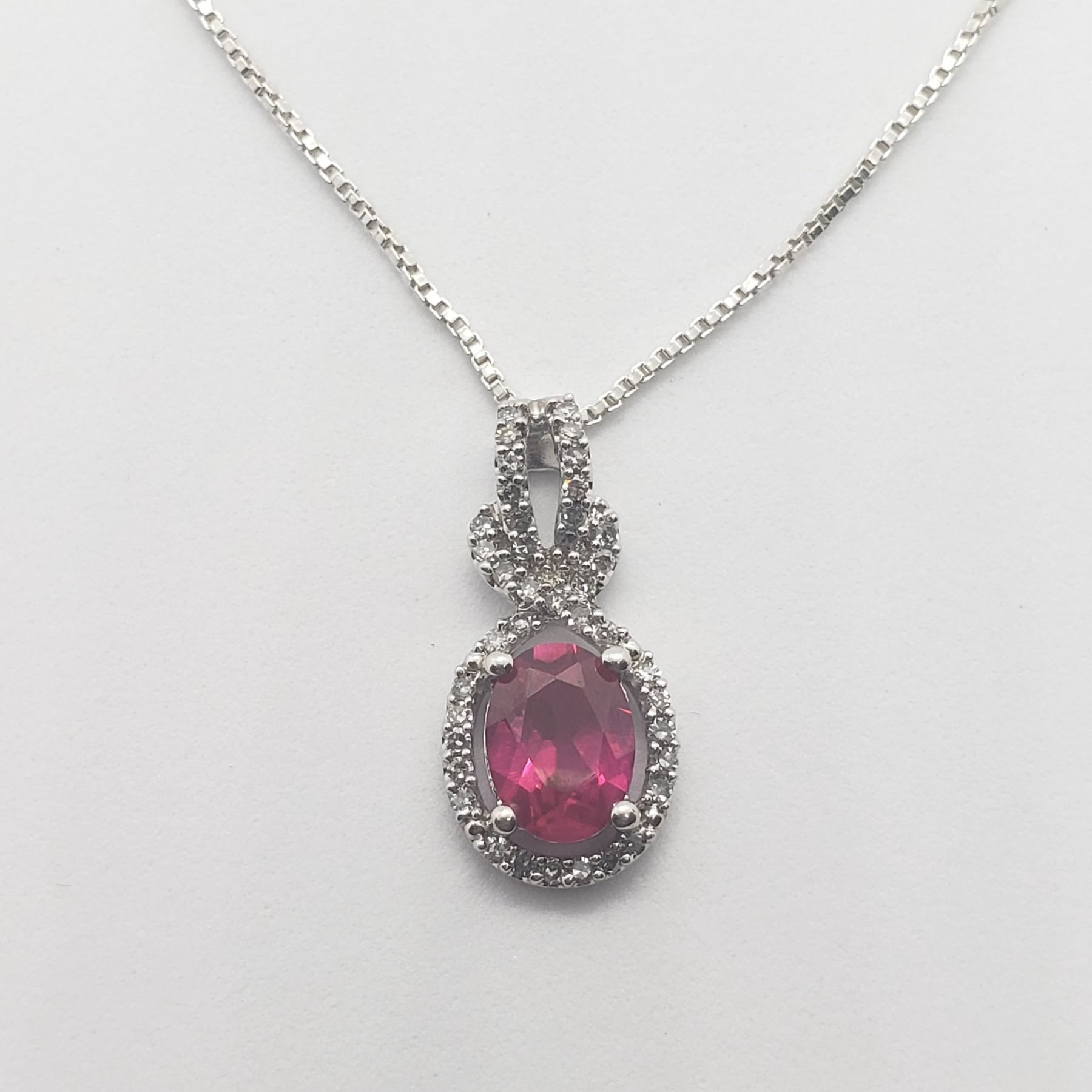 SILVER CREATED RUBY 18" DIAMOND NECKLACE