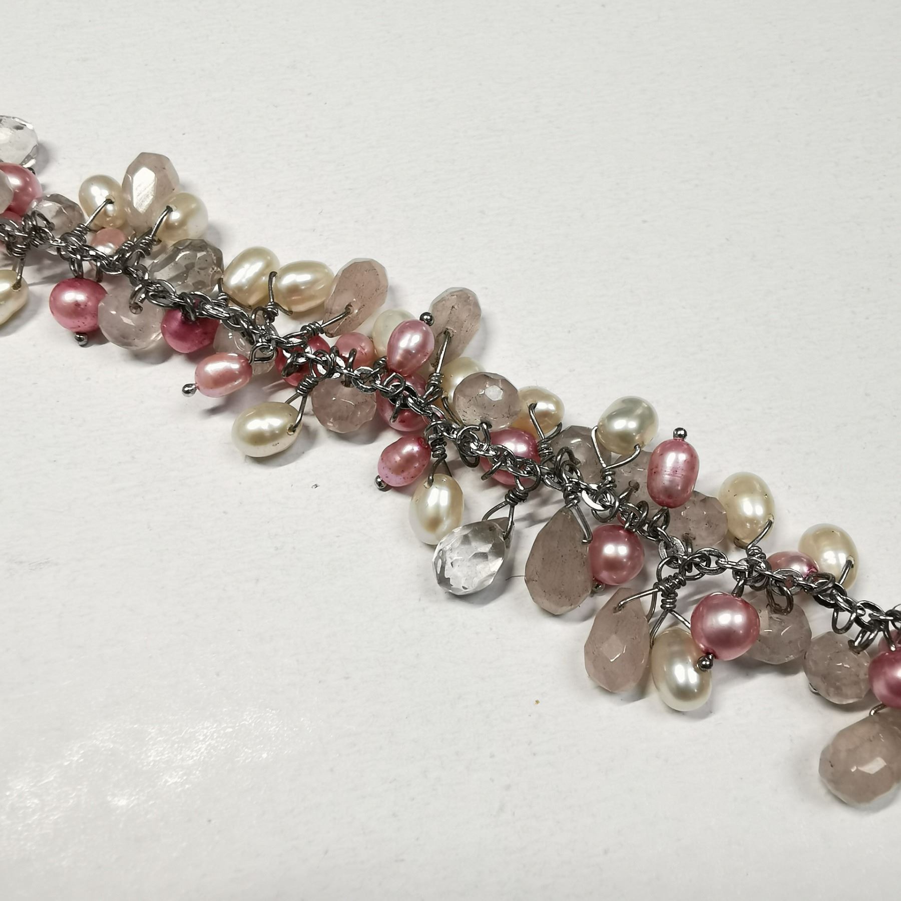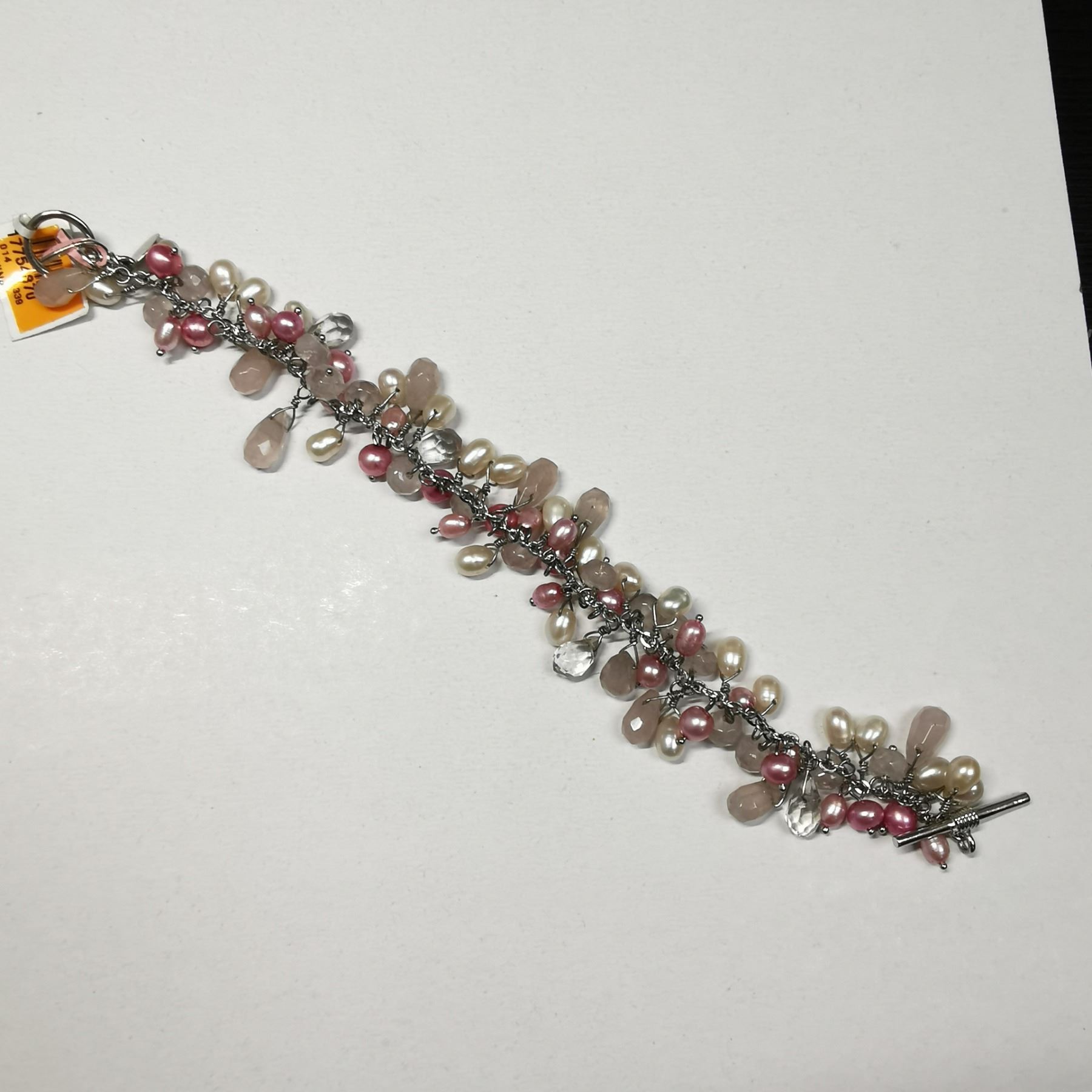 SILVER FRESH WATER PEARL ROSE QUARTZ BRACELET