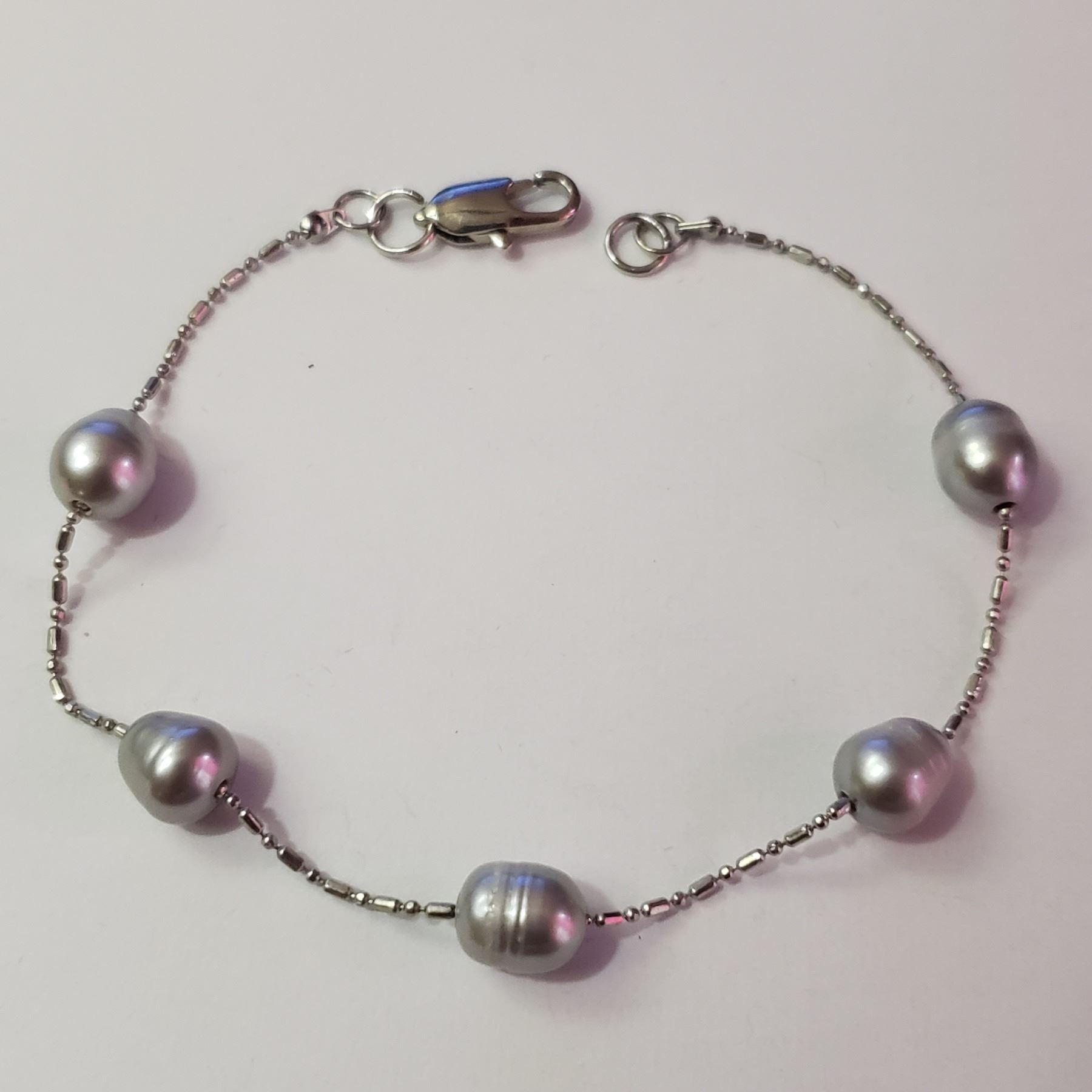 SILVER FRESHWATER PEARL BRACELET (~LENGTH 7.5INCHES) (~WEIGHT 3.54G)