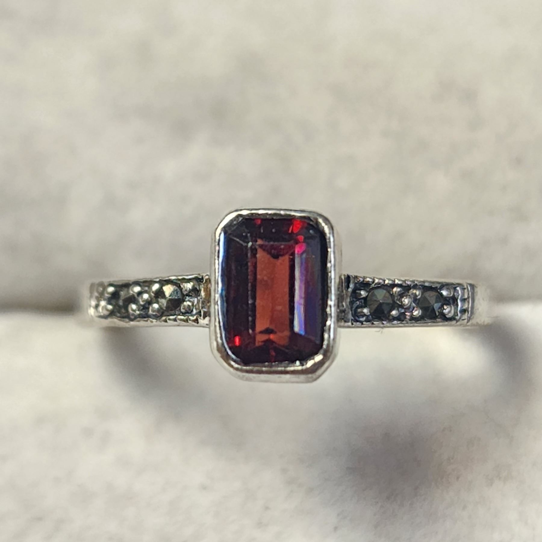 SILVER GARNET AND MARCASITE RING SIZE 6.5