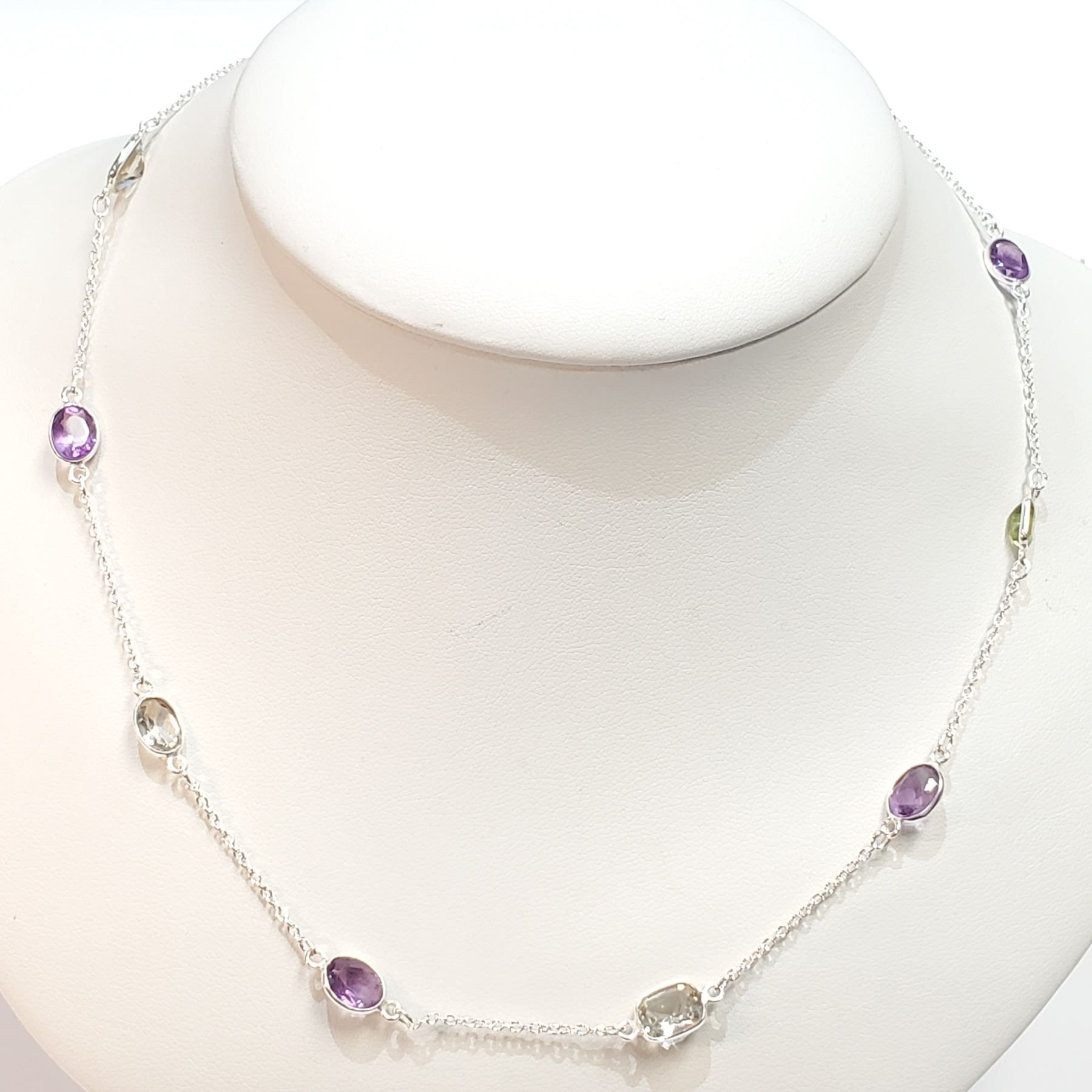 SILVER GENUINE GEMSTONES(10CT) CUSTOM CRAFTED NECKLACE