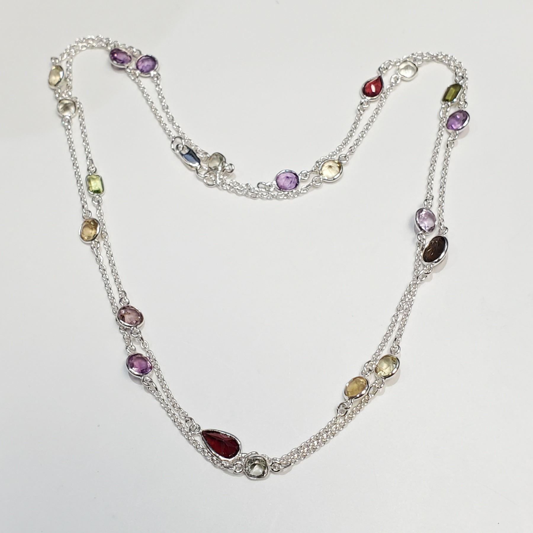 SILVER GENUINE GEMSTONES(20CT) 36" NECKLACE