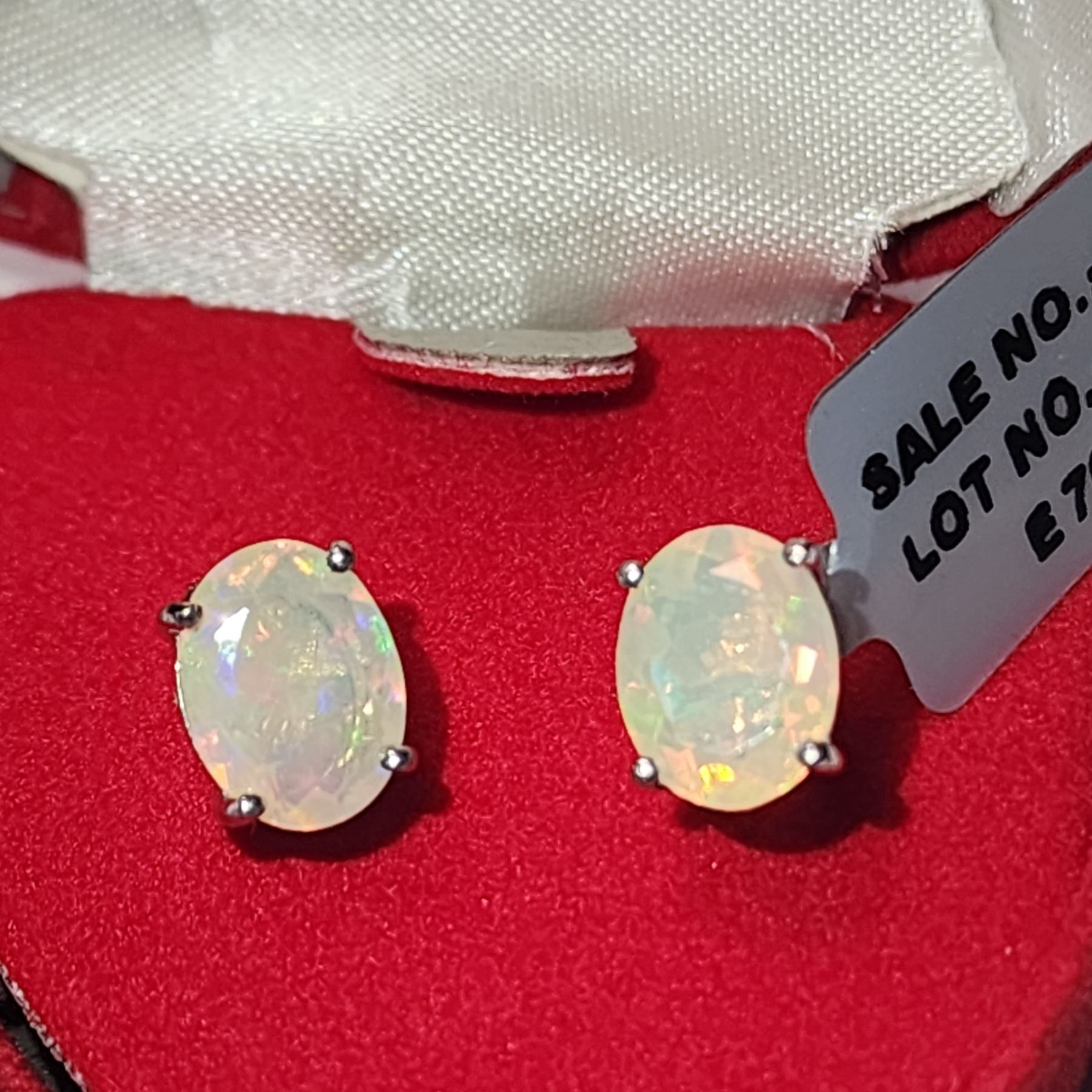SILVER GENUINE OPAL 9X7MM EARRINGS