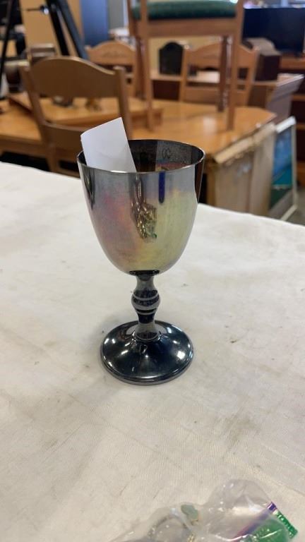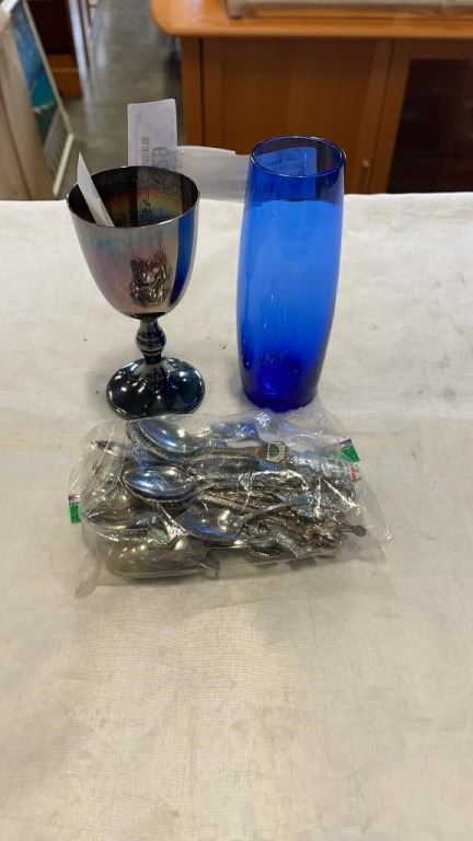 SILVER GOBLET WITH COLLECTOR SPOONS AND SMALL VASE