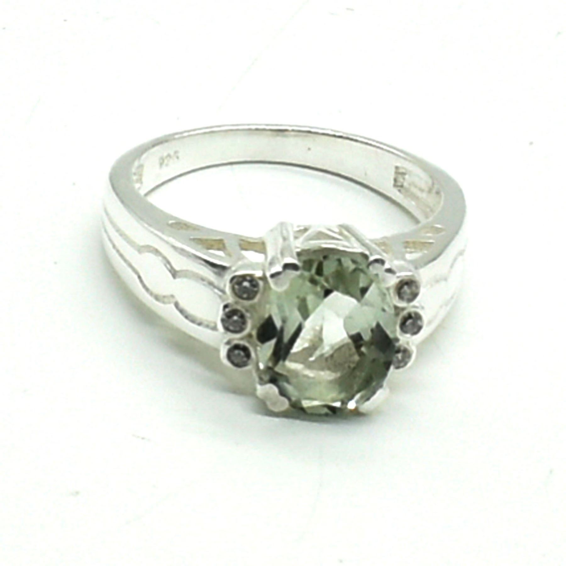 SILVER GREEN AMETHYST CZ(4.5CT) RING SIZE 10