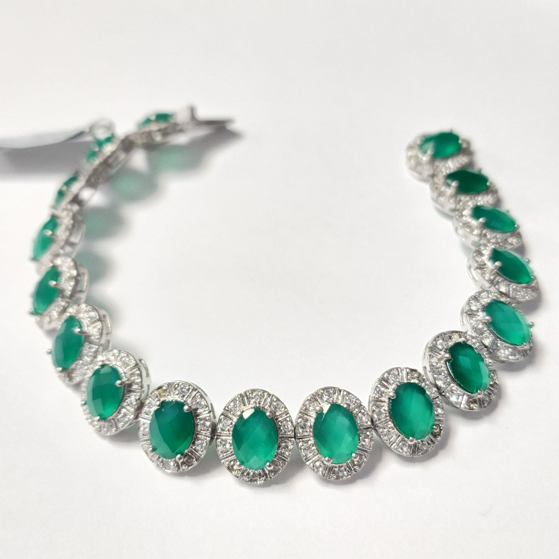 SILVER GREEN ONYX AND ZIRCON(23.4CT) BRACELET