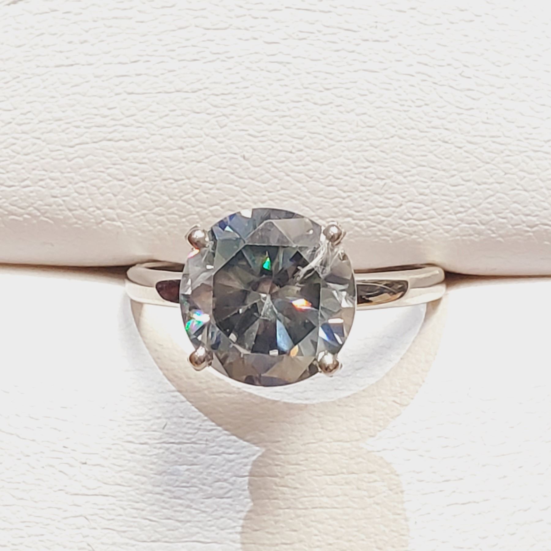 SILVER MOISSANITE(ROUND 9X9 MM)(3.1CT) RING SIZE 6.5