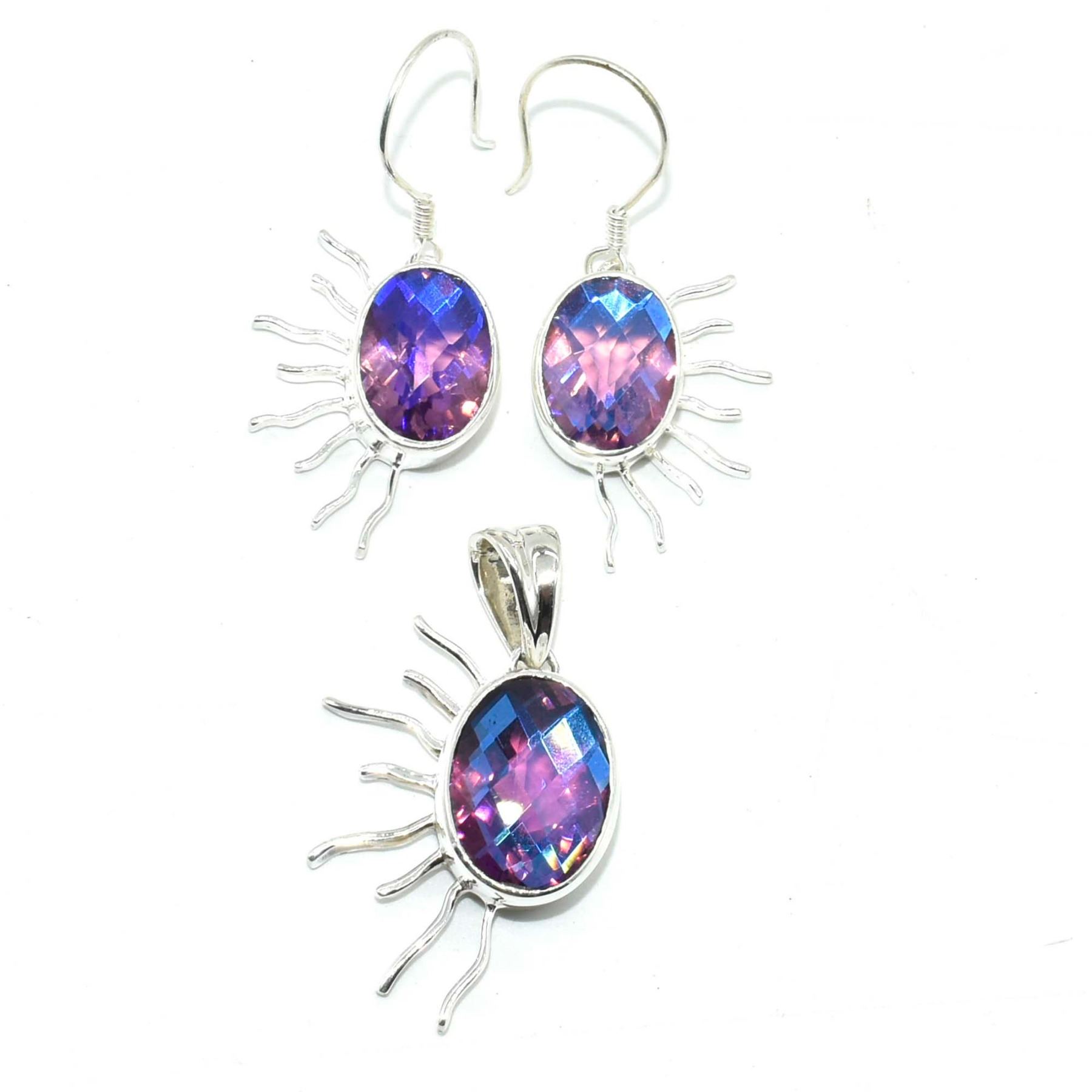 SILVER PINK BLUE MYSTIC QUARTZ(25.2CT) EARRING PENDANT SET