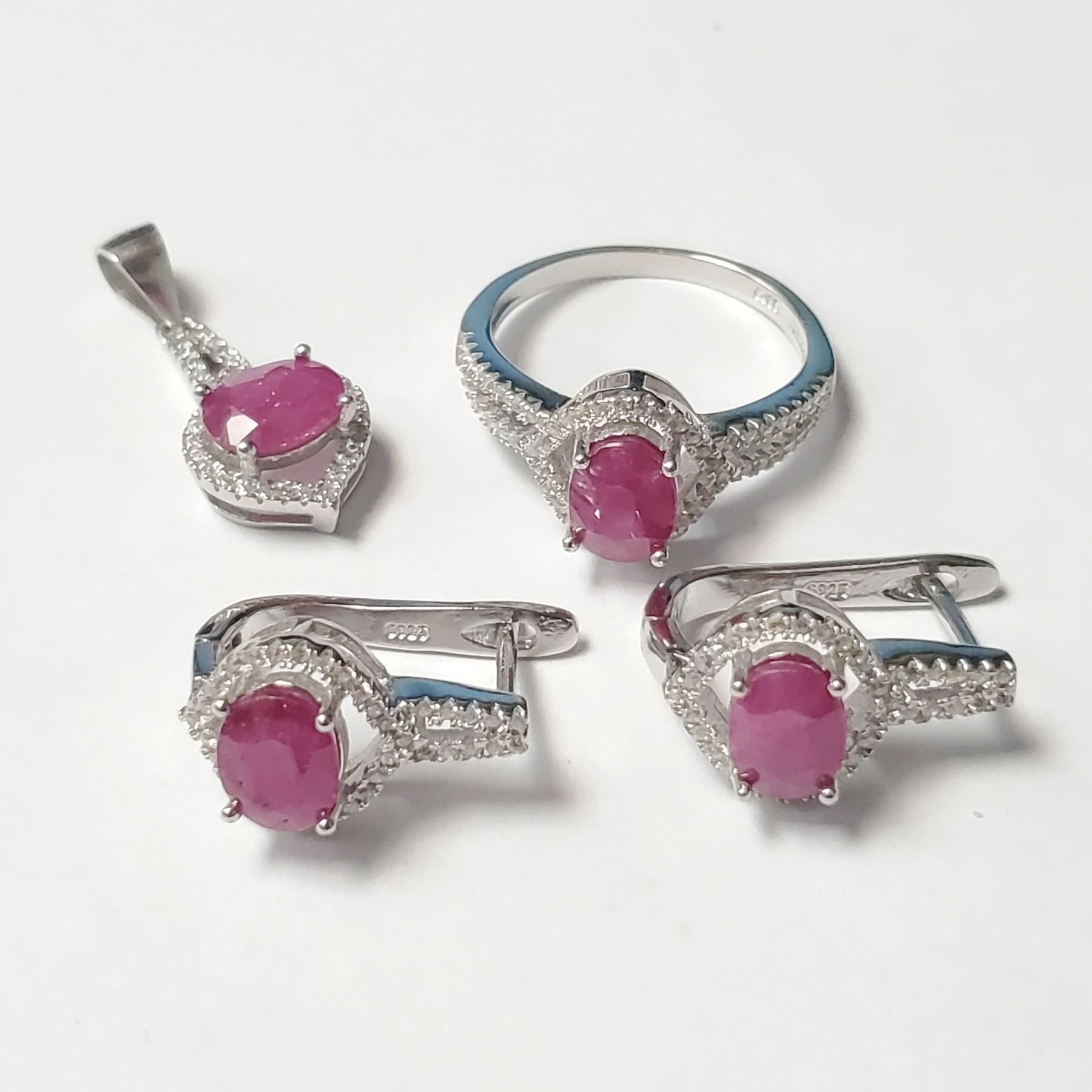 SILVER RUBY RING (SIZE 9) EARRING AND PENDANT(6.4CT) SET