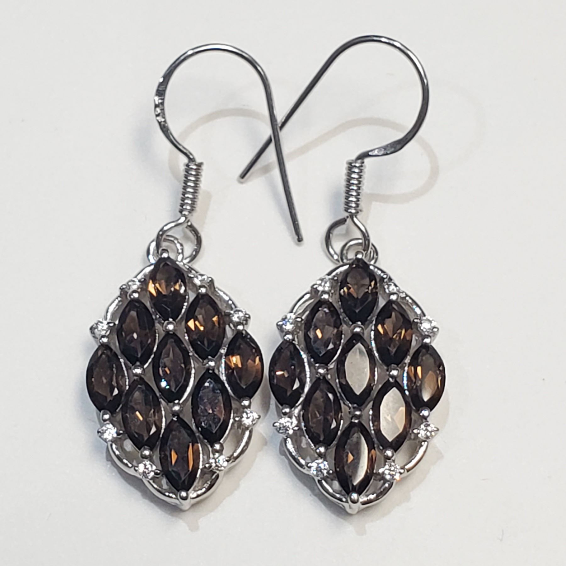 SILVER SMOKEY QUARTZ CZ(6.35CT) EARRINGS