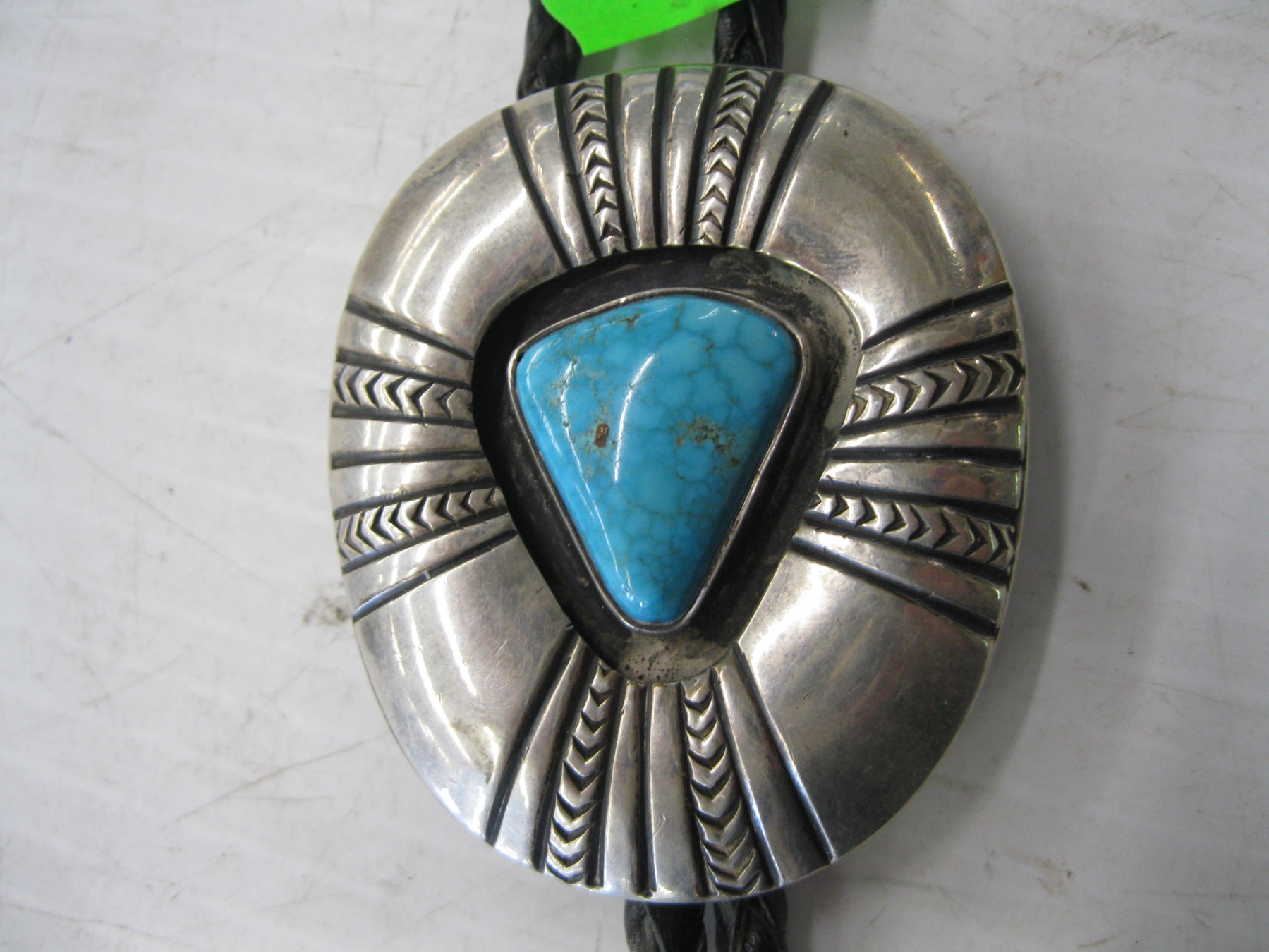 SILVER & TURQUOISE NAVAJO BOLO TIE
