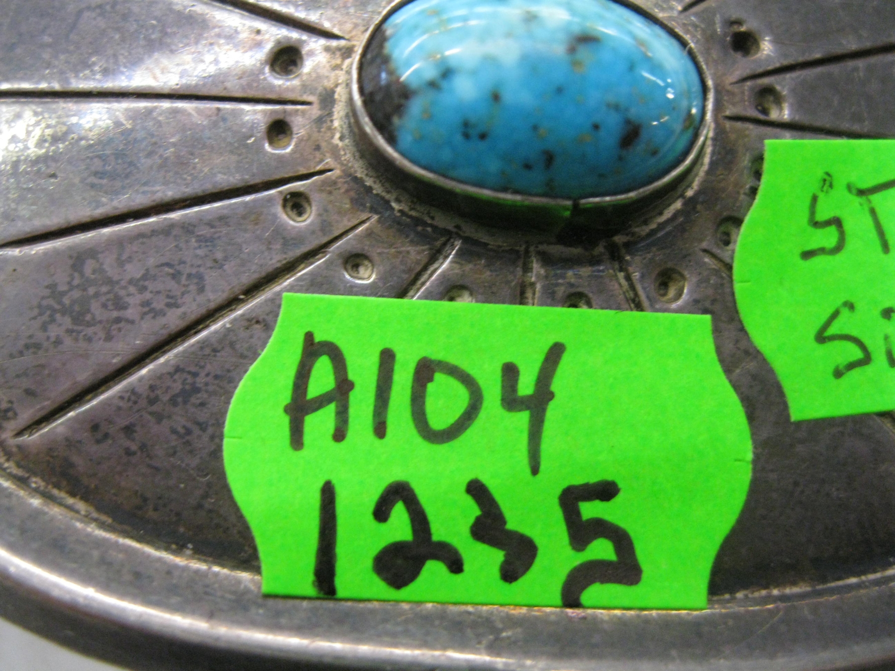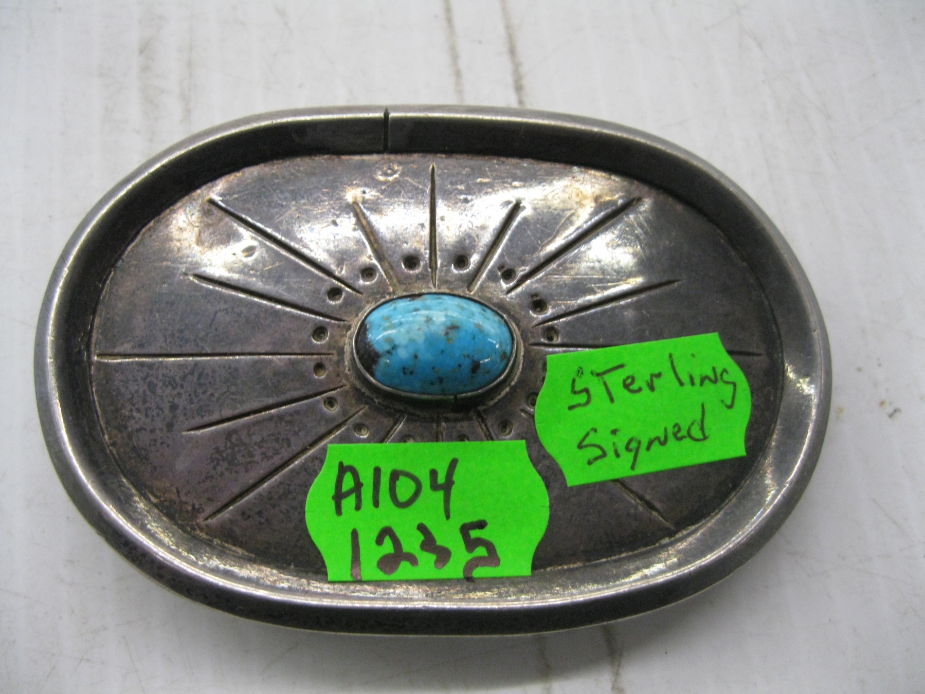 SILVER & TURQUOISE STERLING SIGNED NAVAJO BELT BUCKLE