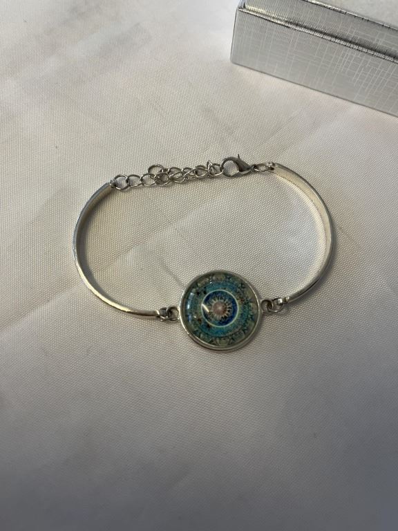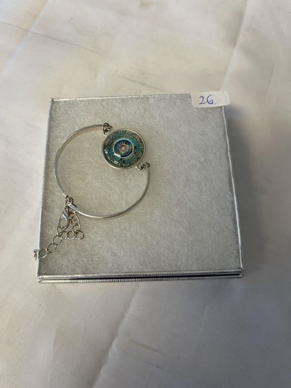 SILVER WITH PAINTED CALENDAR SIGN BRACELET, SELF ADJUSTABLE LENGTH