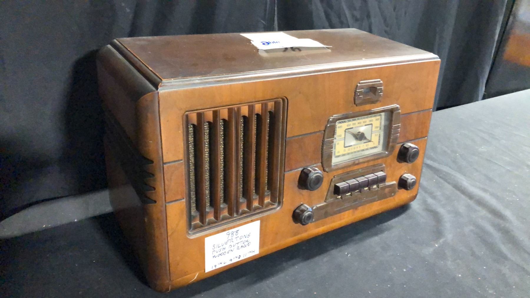SILVERTONE 19" X 9" X 11" PUSH BUTTON WOODEN RADIO