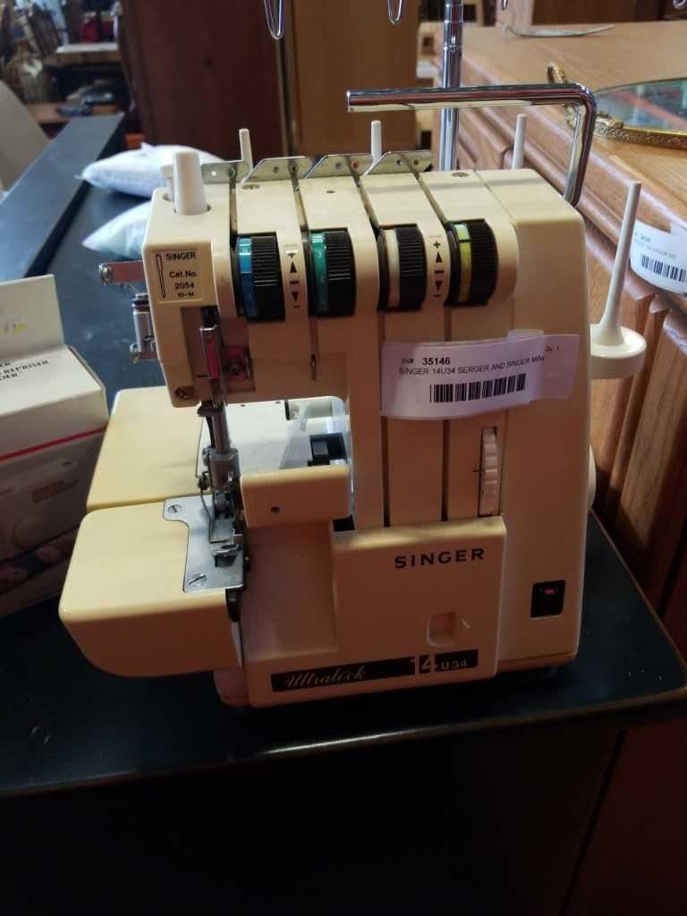 SINGER 14U34 SERGER - no pedal, no power cord AND SINGER MINI MENDER